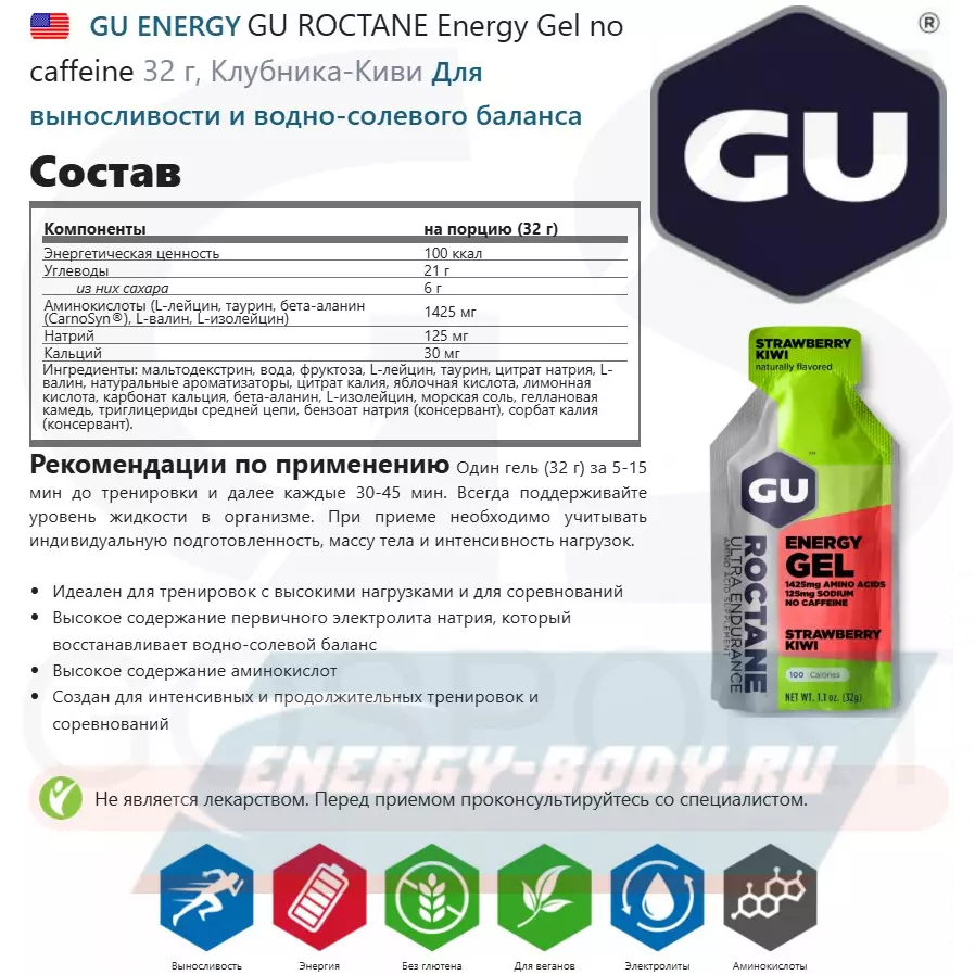 - Полное описание GU ROCTANE Energy Gel no caffeine