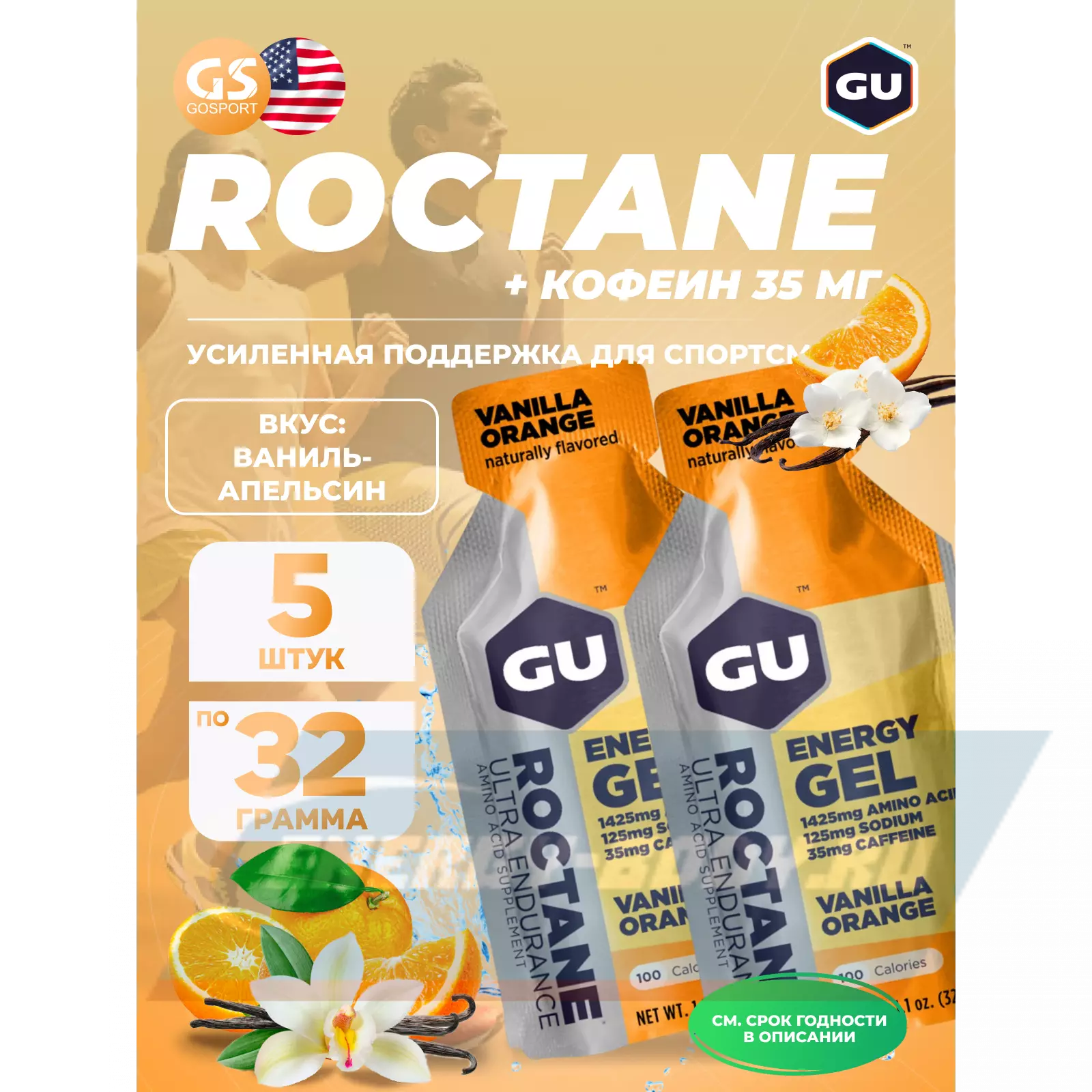 GU ENERGY GU ROCTANE Energy Gel 35mg caffeine 5 x 32 г, Ваниль-Апельсин — Для выносливости и водно-солевого баланса
