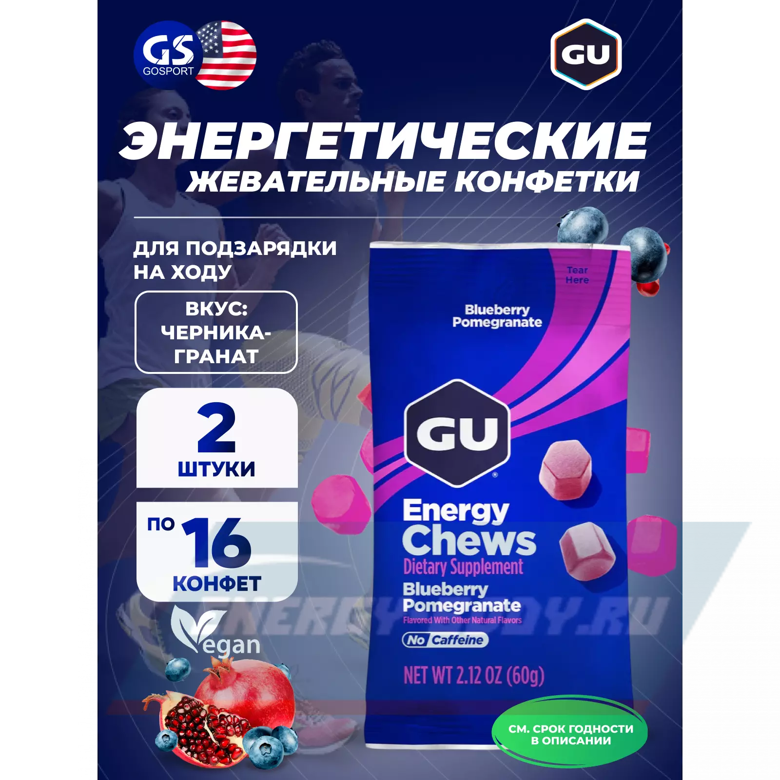 GU ENERGY Мармеладки GU Energy Chews 2 x 60 г, Черника-Гранат — Быстрое и длительное снабжение энергией