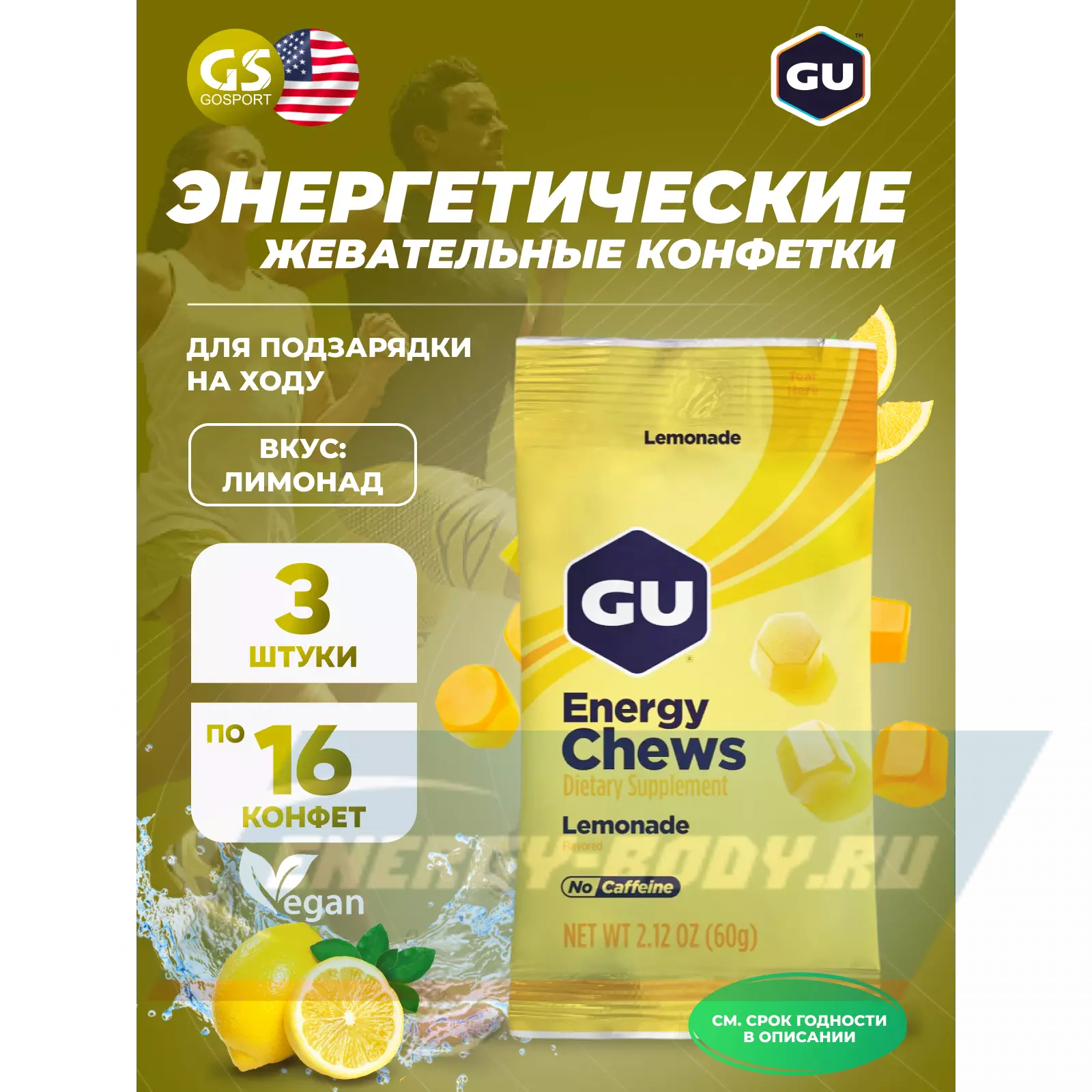 GU ENERGY Мармеладки GU Energy Chews 3 x 60 г, Лимонад — Быстрое и длительное снабжение энергией