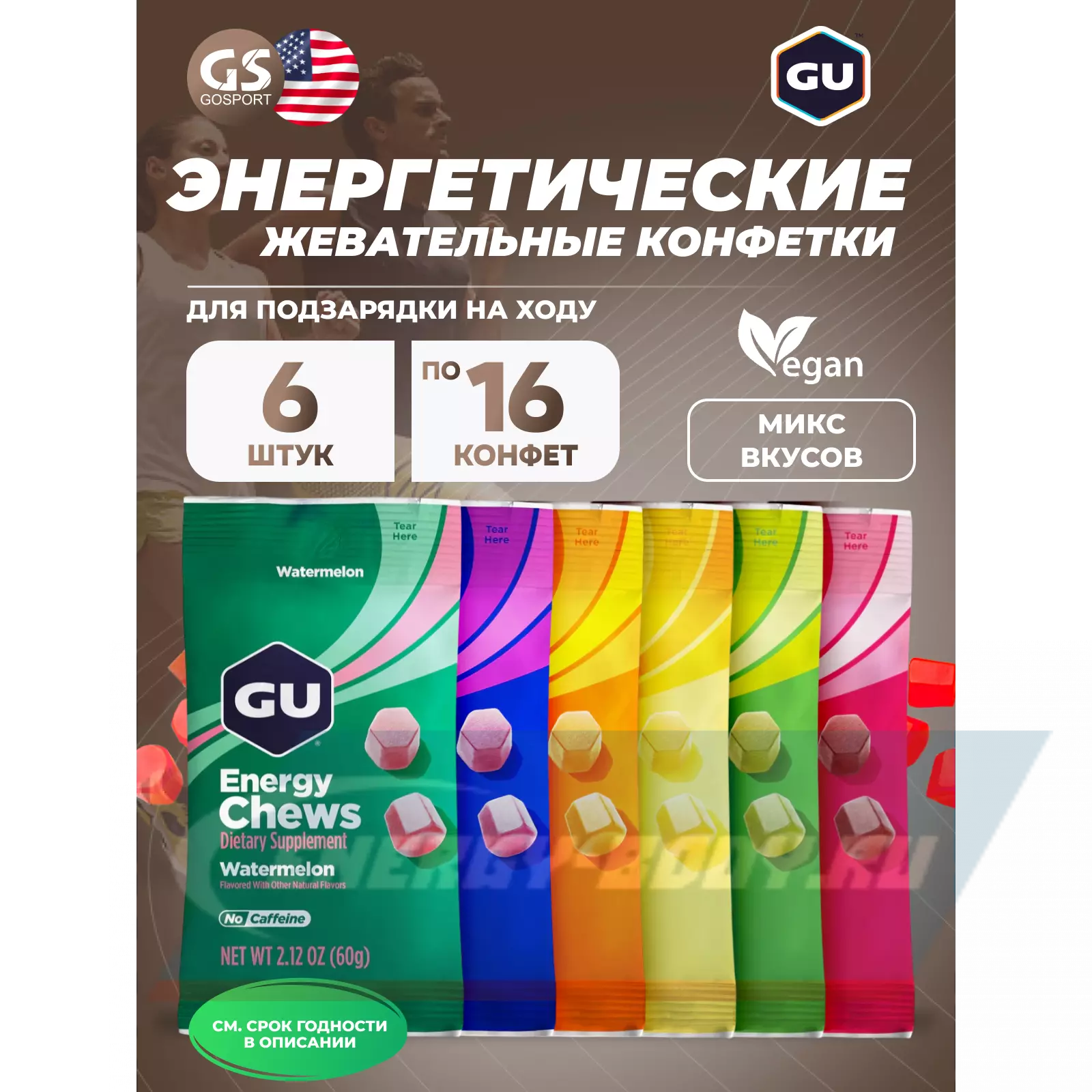 GU ENERGY Мармеладки GU Energy Chews 6 x 60 г, Микс — Быстрое и длительное снабжение энергией
