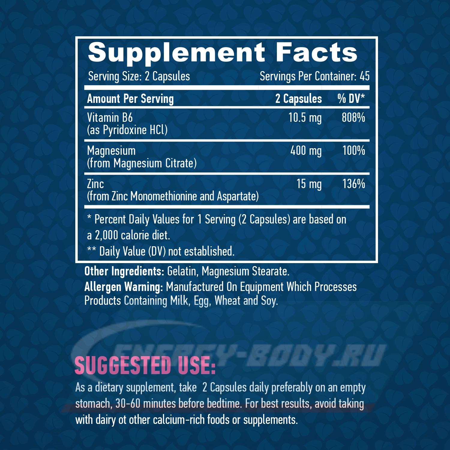 Высококачественный продукт, на 100% состоящий из цинка, магния и витамина B6, поможет вам укрепить иммунную систему и ускорить восстановление.