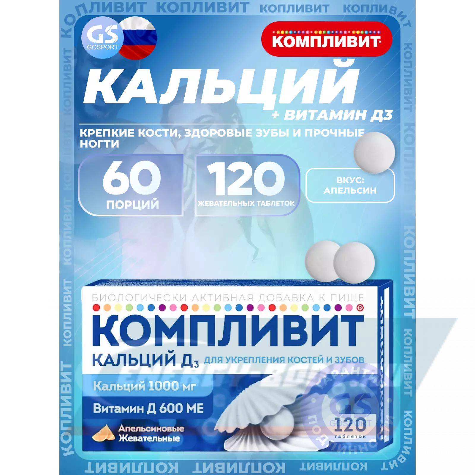 Компливит Кальций Д3 120 жевательных таблеток, Апельсин — Крепкие кости, здоровые зубы и прочные ногти