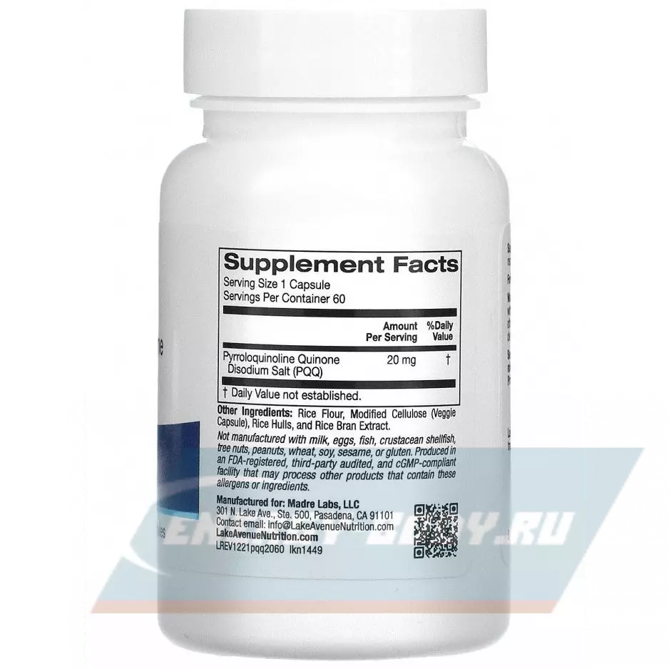 Состав Lake Avenue Nutrition PQQ 20 mg