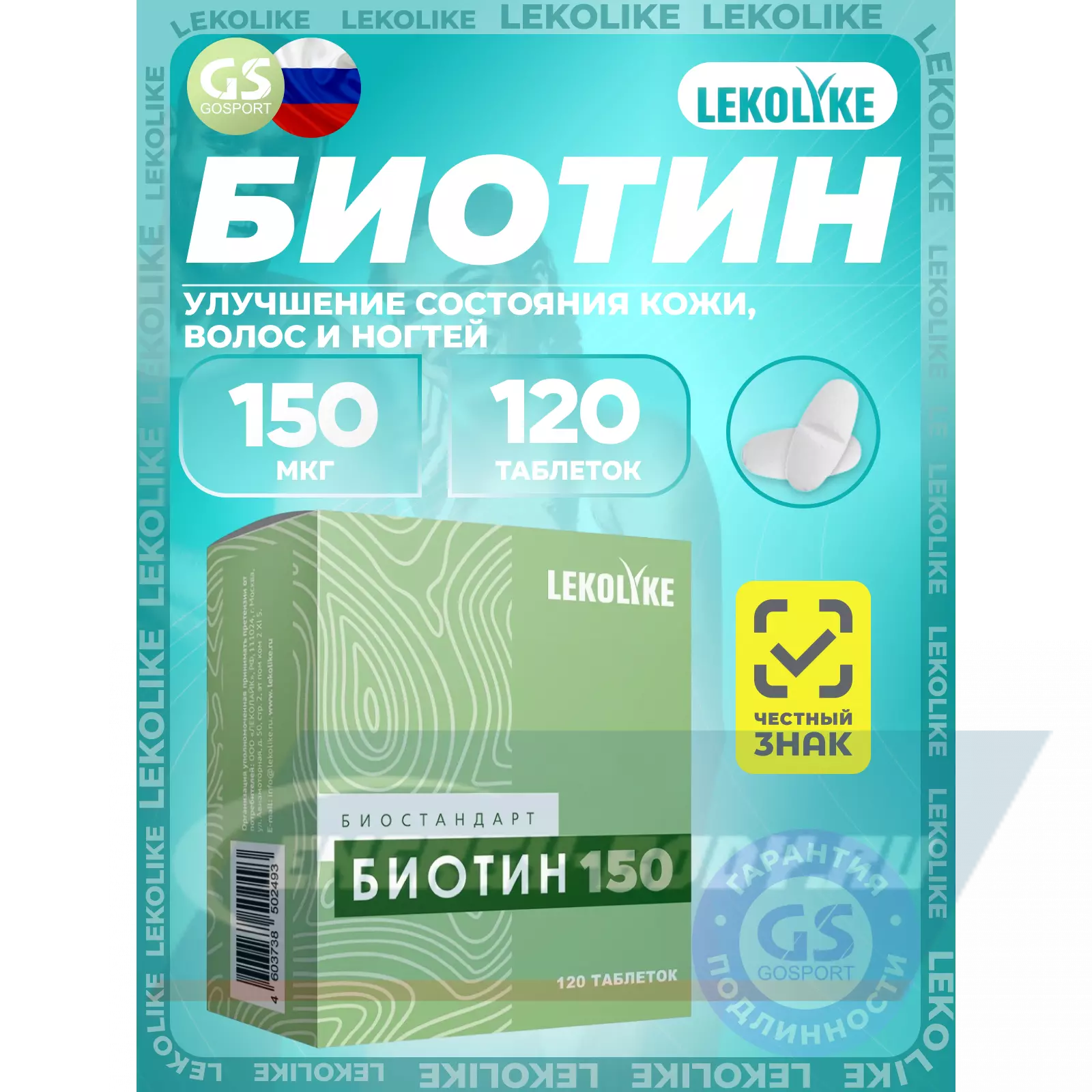 LEKOLIKE Биотин 150 мкг 120 таблеток — Улучшение состояния кожи, волос и ногтей
