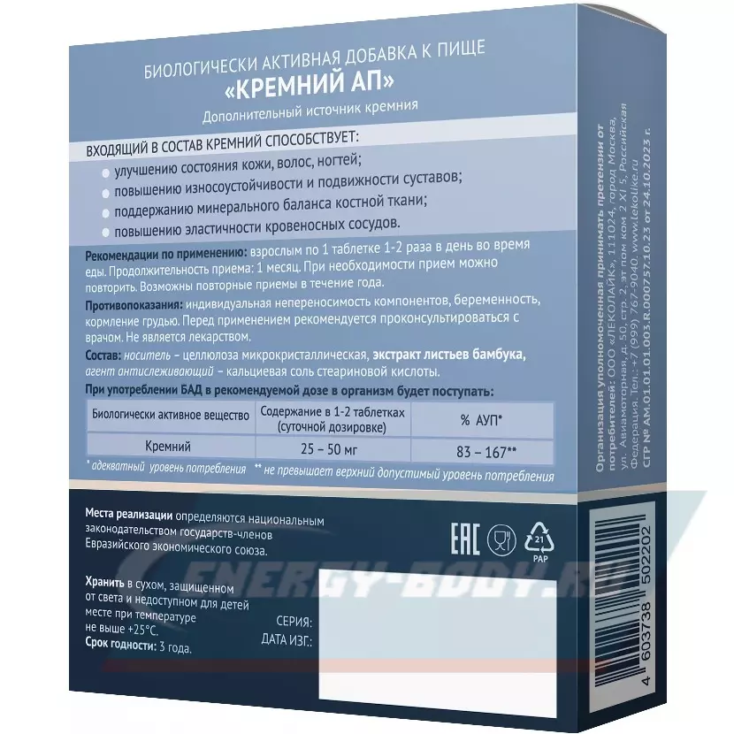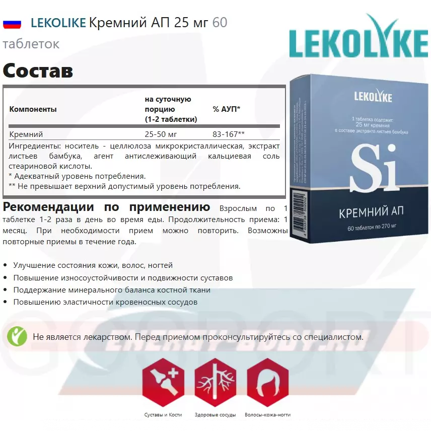 LEKOLIKE Кремний АП 25 мг 60 таблеток — Для красоты, суставов и сосудов