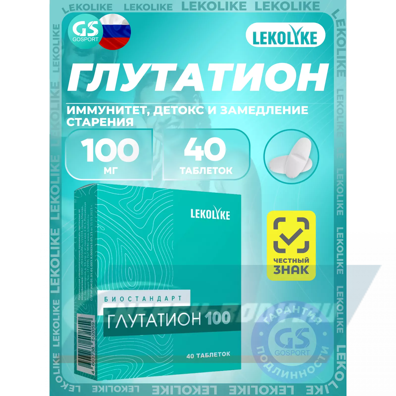LEKOLIKE Глутатион 100 мг 40 таблеток — Для иммунитета, детокса и замедления процессов старения