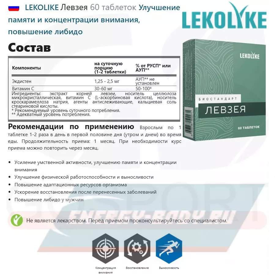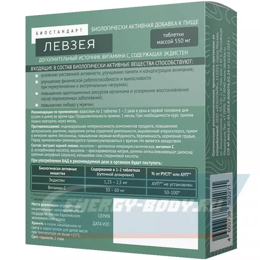 Биодобавка «БИОСТАНДАРТ ЛЕВЗЕЯ» от компании ЛЕКОЛАЙК с гарантированным содержанием экдистена поможет повысить эффективность адаптационных возможностей организма и значительно улучшить качество жизни человека.