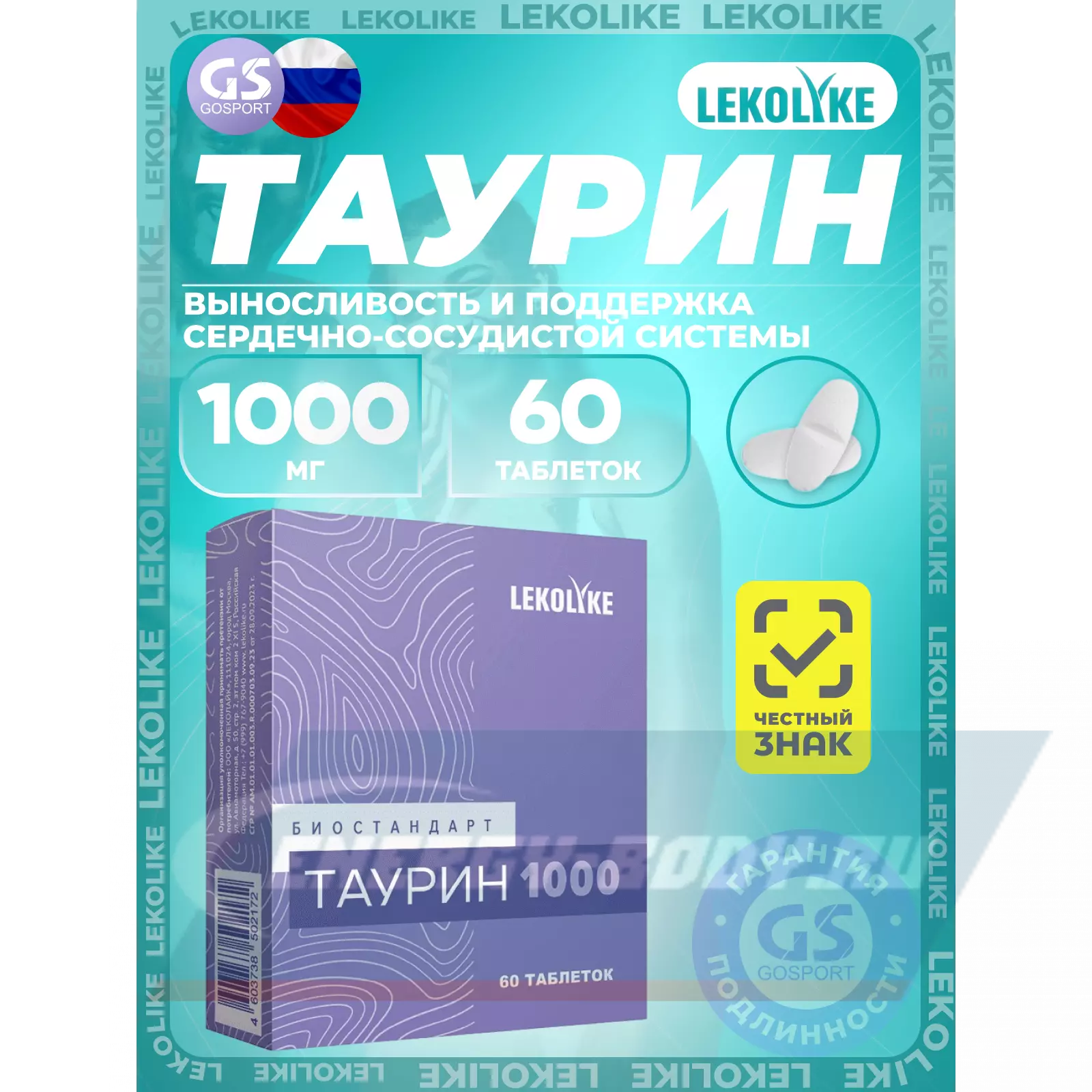 LEKOLIKE Таурин 1000 мг 60 таблеток — Выносливость и поддержка сердечно-сосудистой системы