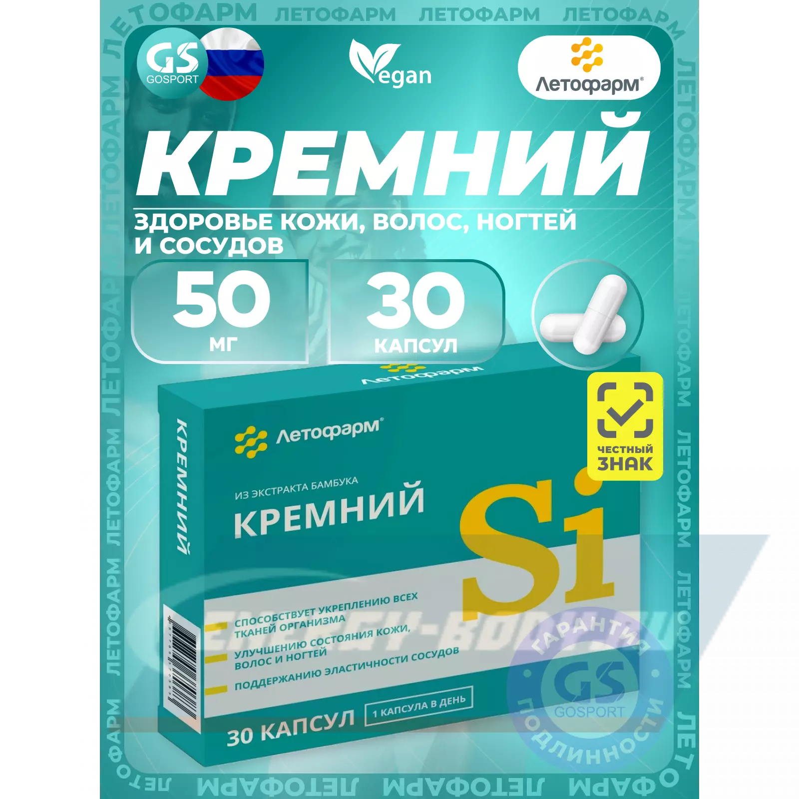 Летофарм Кремний 50 мг 30 капсул — Здоровье кожи, волос, ногтей и сосудов