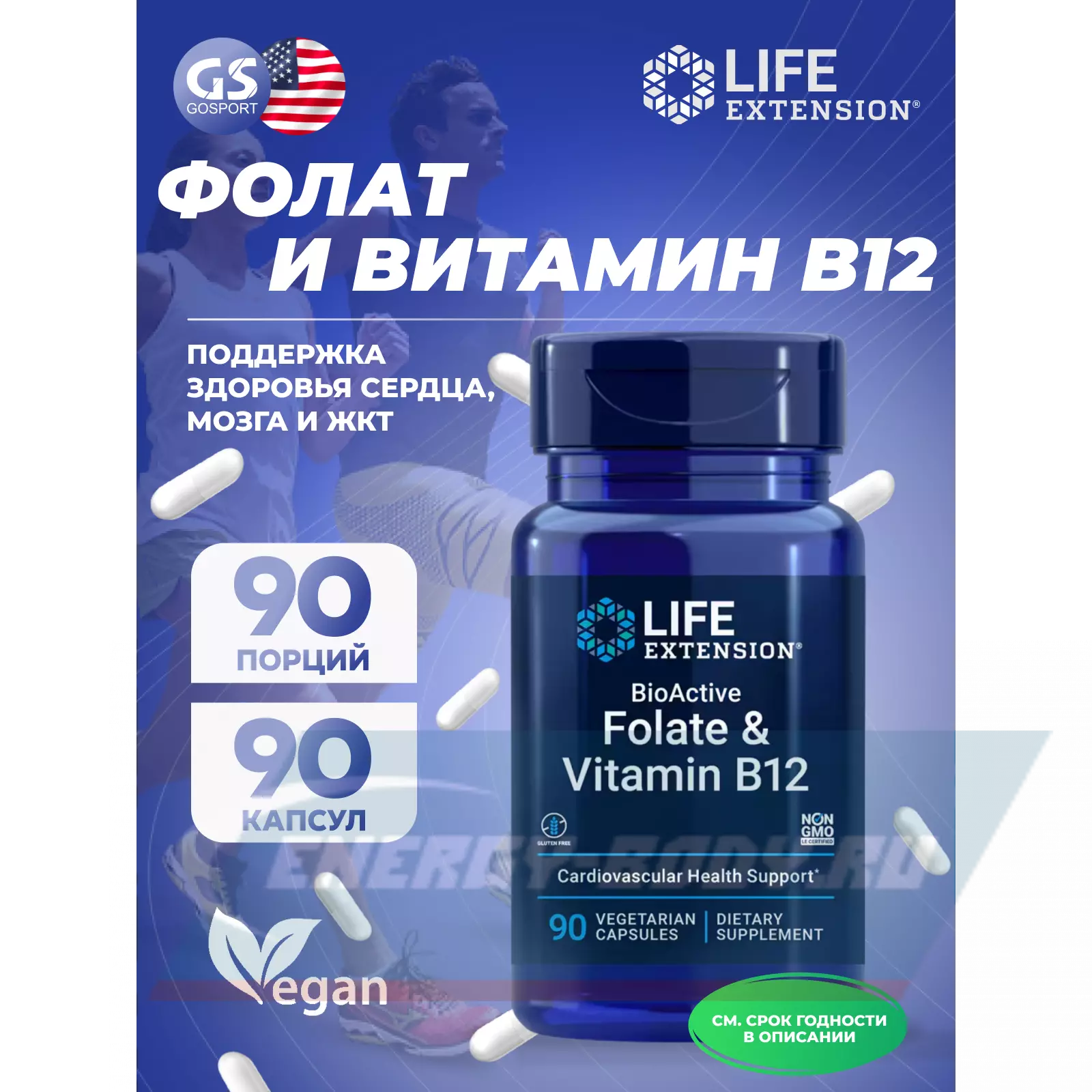 BioActive Folate & Vitamin B12 от Life Extension – это топ комплекс, который содержит витамины B9 и B12 в метильных формах. Это самые высококачественные и биодоступные формы, которые существуют в индустрии. Натуральная форма витамина B9 участвует в белковом обмене, имеет мощное антиоксидантное действие. Также вещество устраняет сыпь, акне, аллергию и другие накожные заболевания, снижает воспалительные процессы и омолаживает ткани. Фолат важен для поддержания очищающих функций организма и выведения шлаков и других побочных продуктов. Также фолат участвует в процессе клеточного деления, имеет протекторное воздействие.