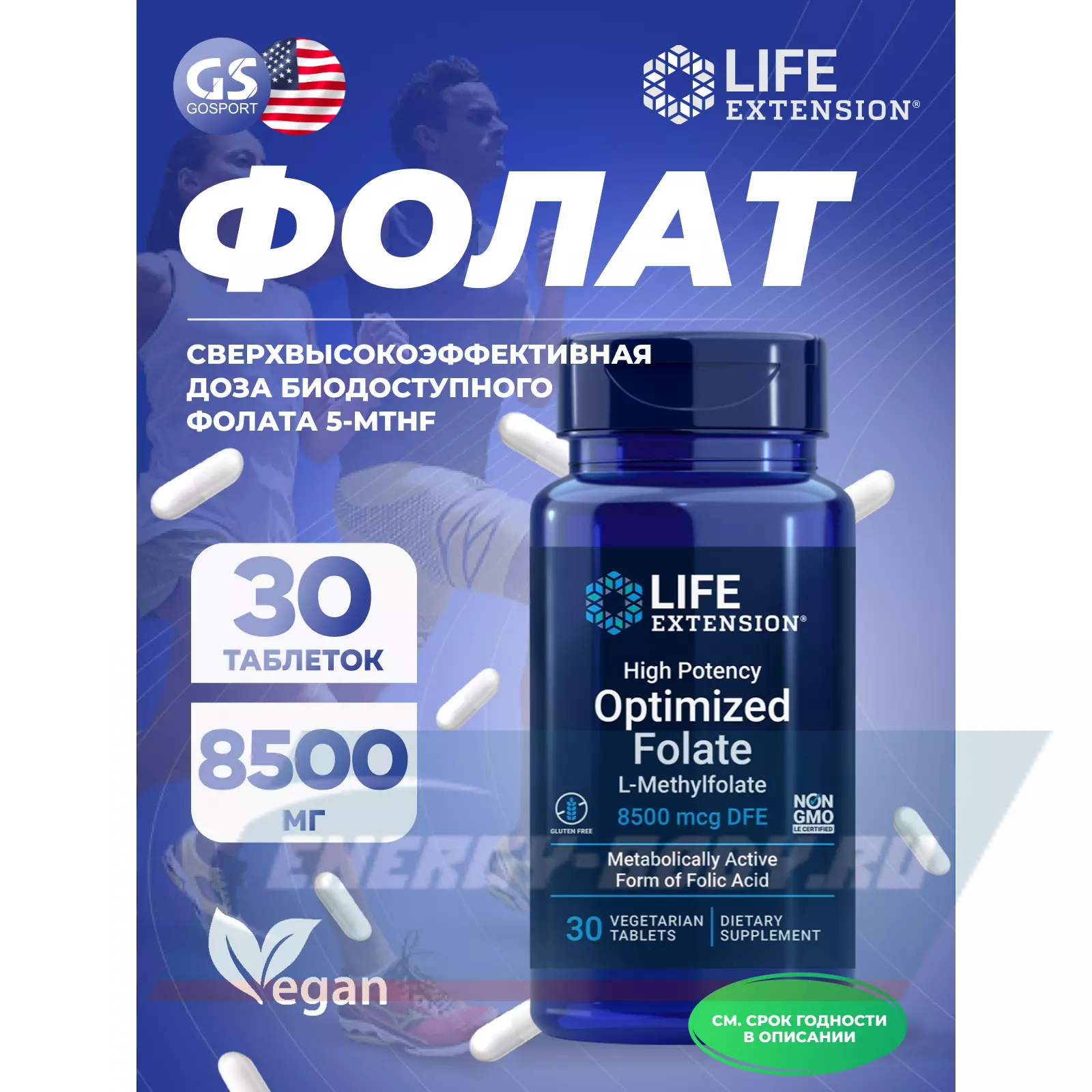 High Potency Optimized Folate 8500 mcg DFE 30 таблеток