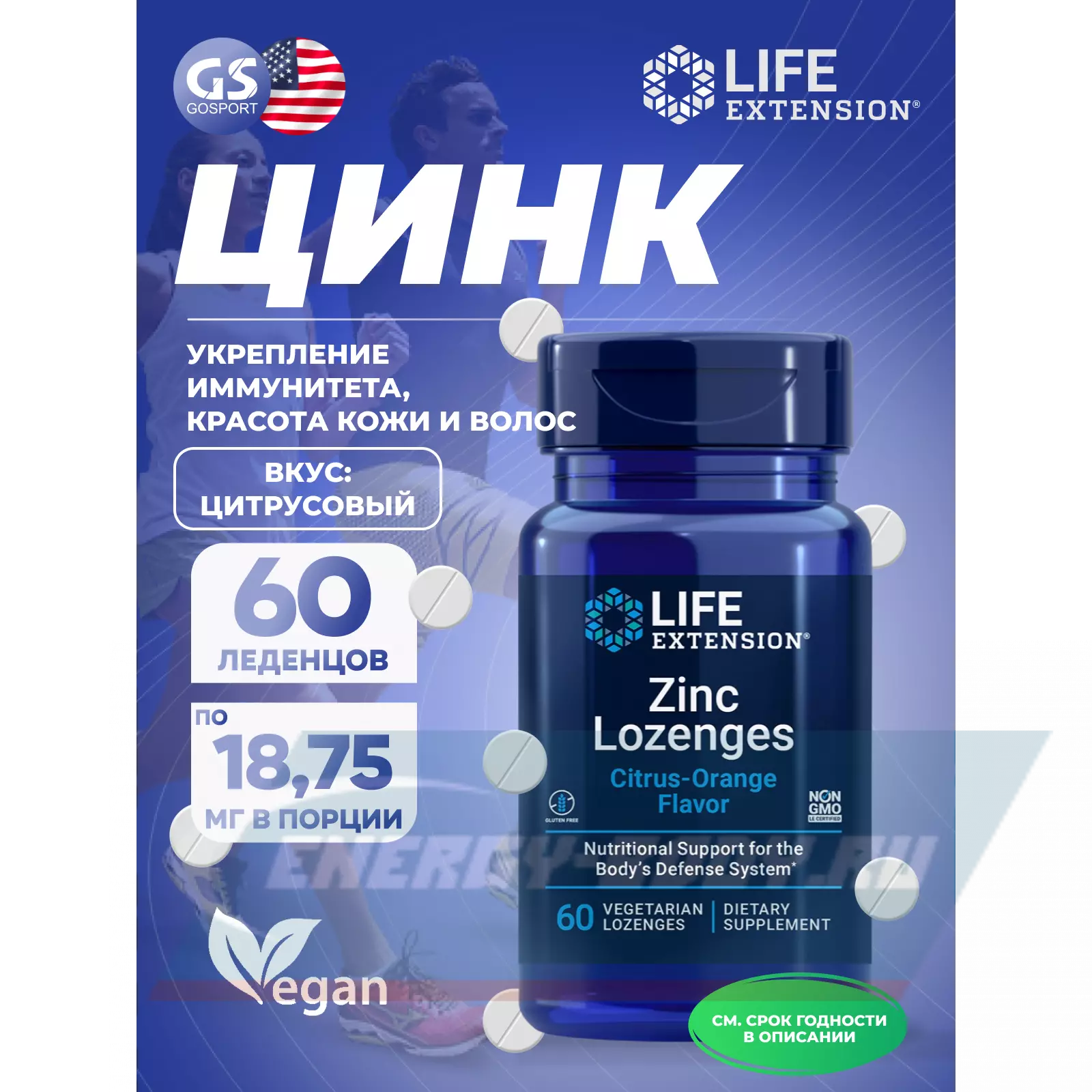 Состав Life Extension Zinc Lozenges (Citrus-Orange Flavor)