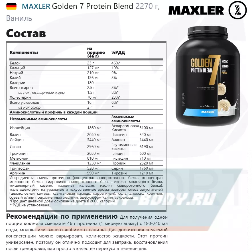 MAXLER Golden 7 Protein Blend 2270 г, Ваниль  MAXLER Golden 7 Protein Blend 2270 г, Ваниль  MAXLER Golden 7 Protein Blend 2270 г, Ваниль