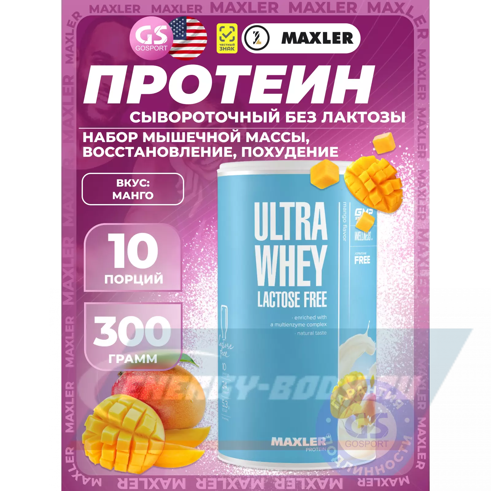 MAXLER Ultra Whey Lactose Free 300 г, Манго — Отсутствие лактозы, Минимальное количество жиров и сахаров