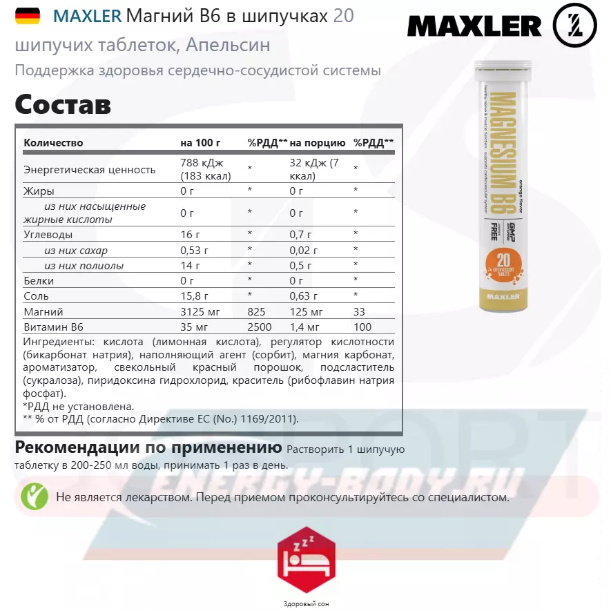 Maxler Magnesium B6 – это простой способ обеспечить организм важными микроэлементами для оптимального здоровья. Шипучие таблетки легки в применении, у них великолепный цитрусовый вкус и низкое содержание сахара.