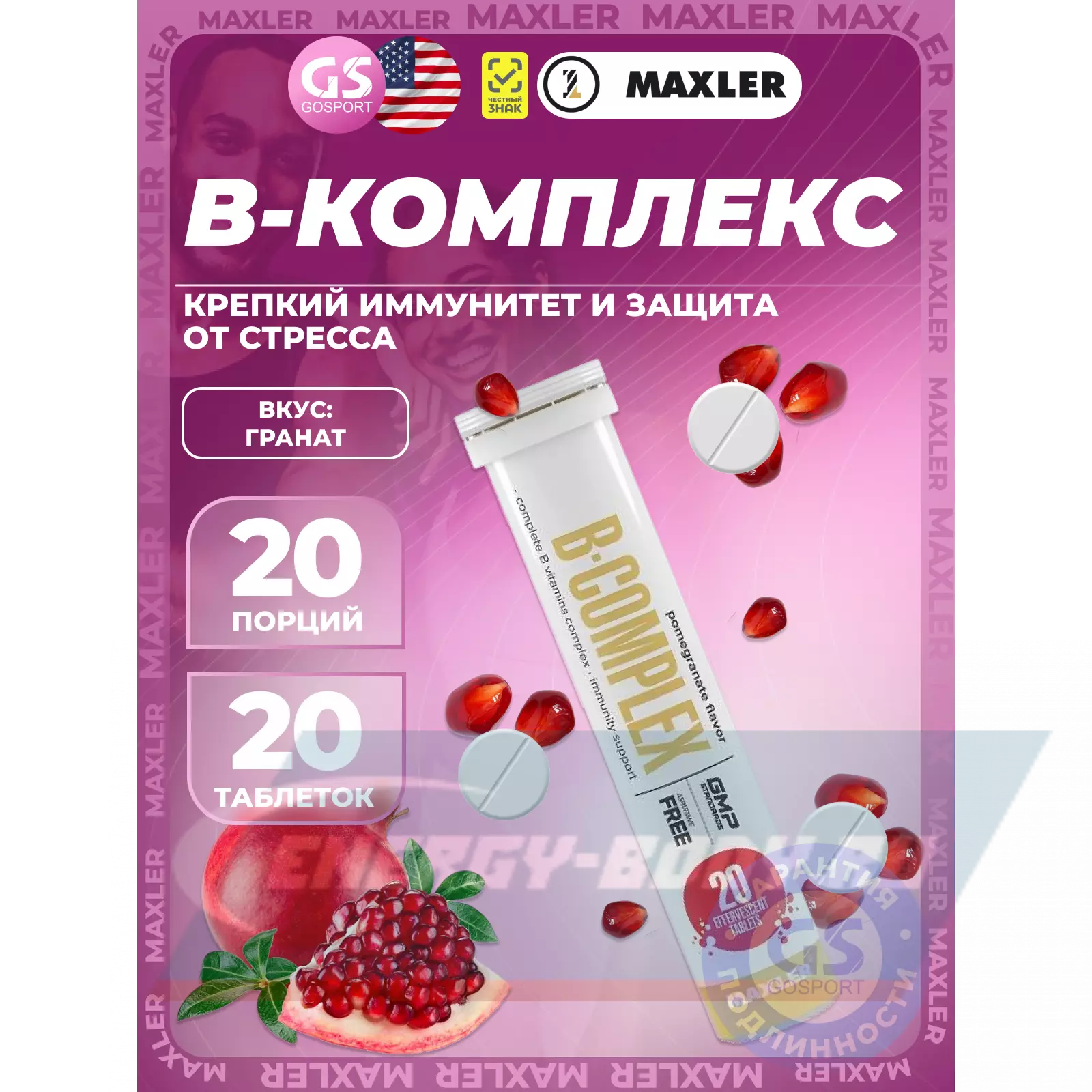 MAXLER B-Complex 20 шипучих таблеток, Гранат — для иммунитета, мозга и энергии