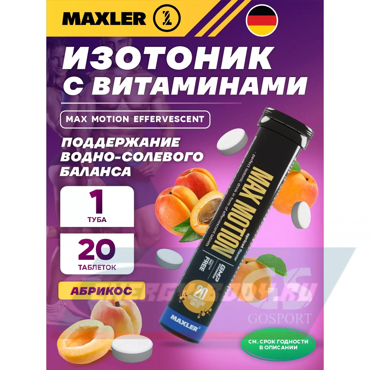 MAXLER Max Motion Effervescent 1х20 шипучих таблеток, Абрикос — Восстановление и поддержание водно-солевого баланса