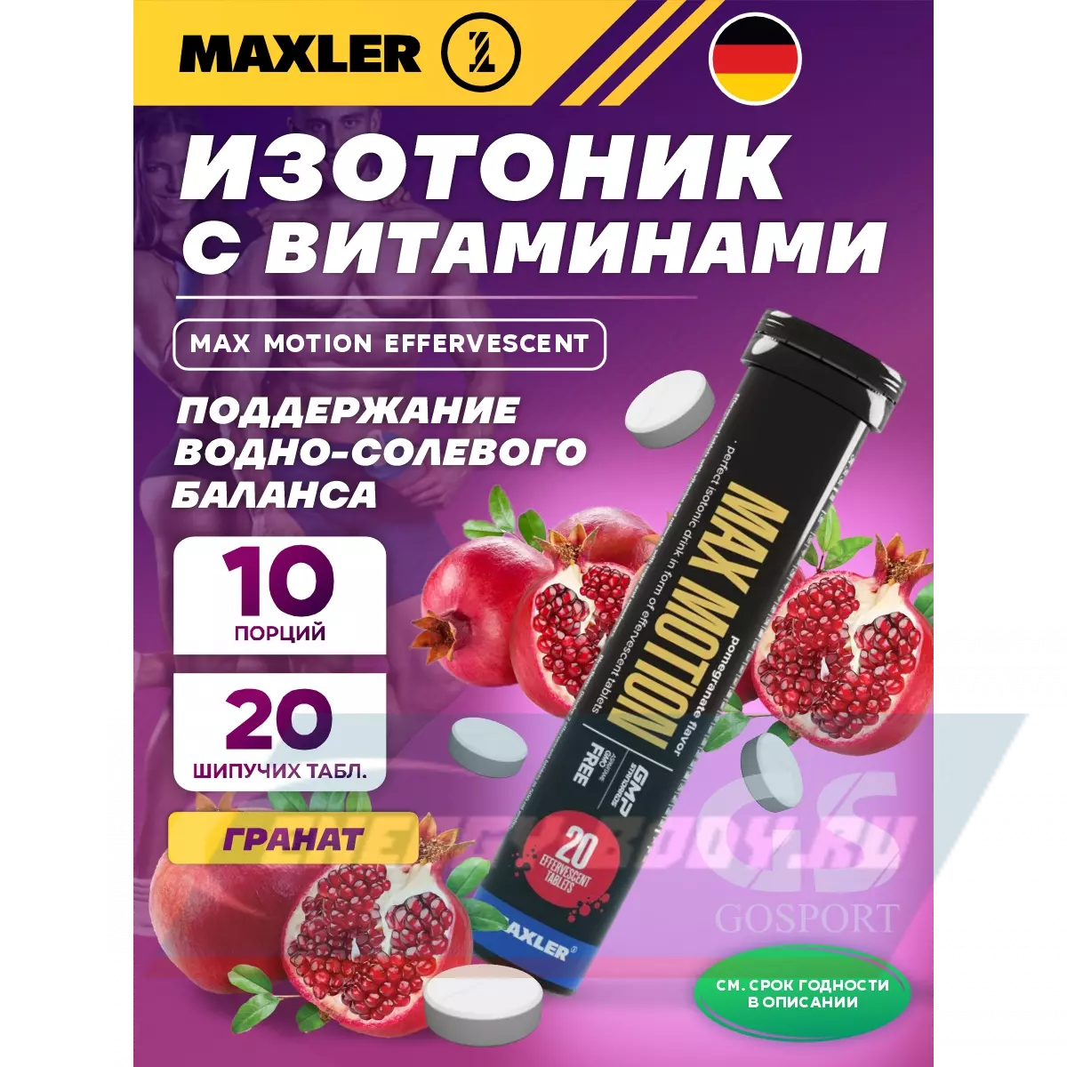 MAXLER Max Motion Effervescent 1х20 шипучих таблеток, Гранат — Восстановление и поддержание водно-солевого баланса