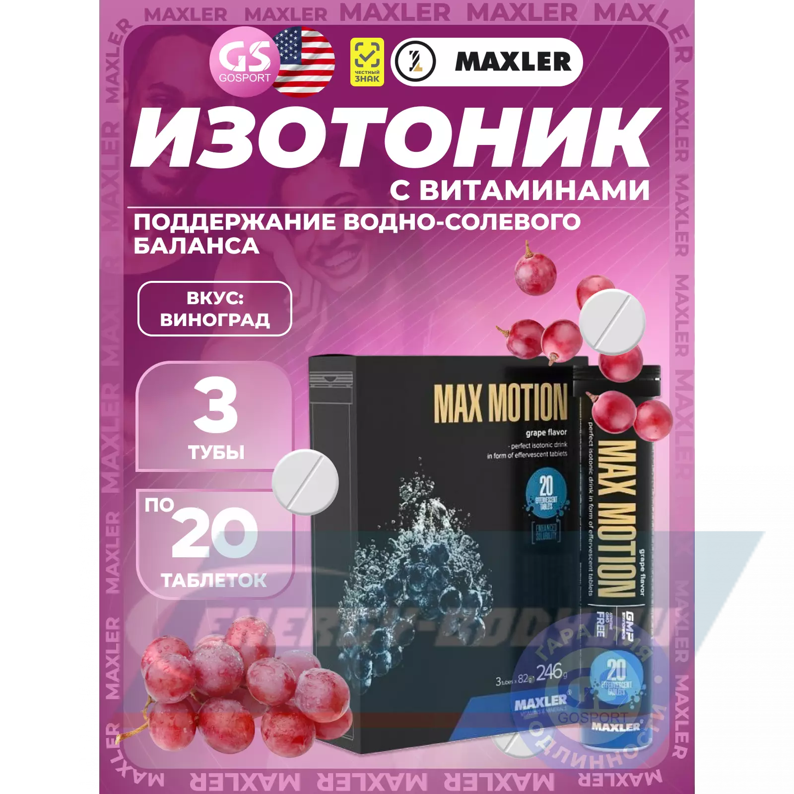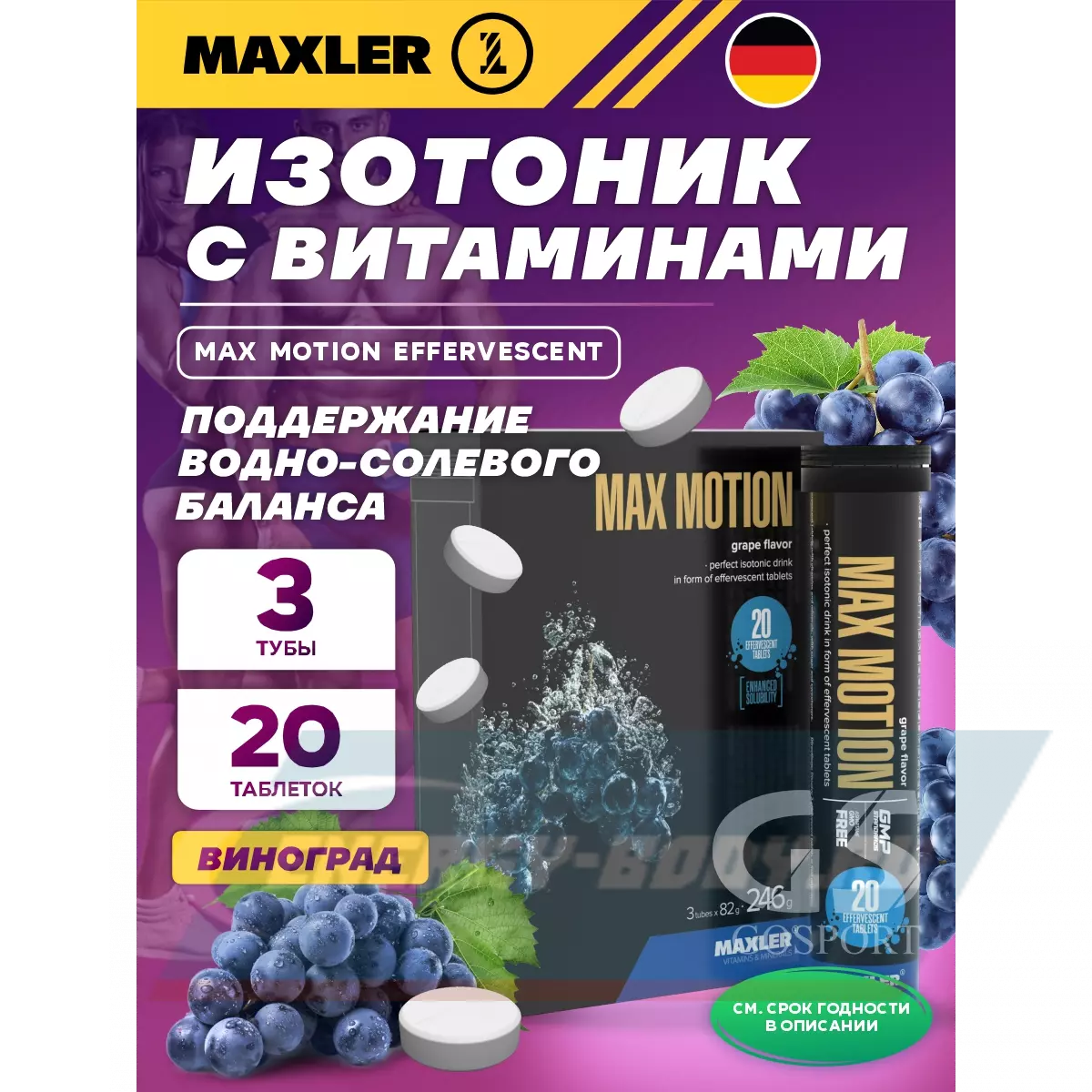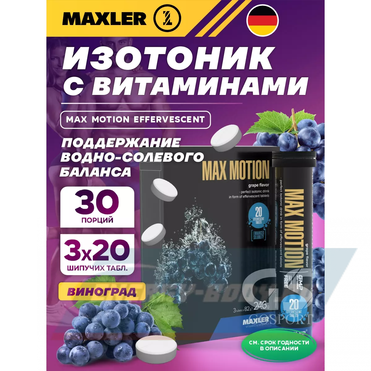 MAXLER Max Motion Effervescent 3х20 шипучих таблеток, Виноград — Восстановление и поддержание водно-солевого баланса