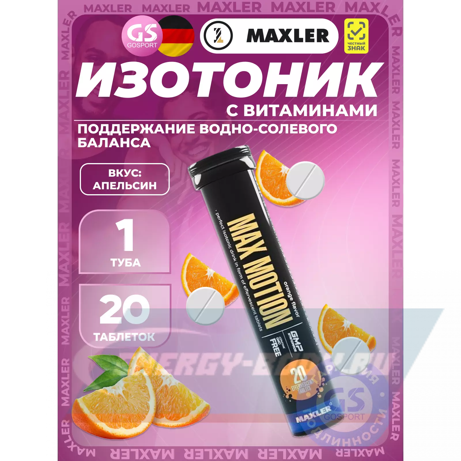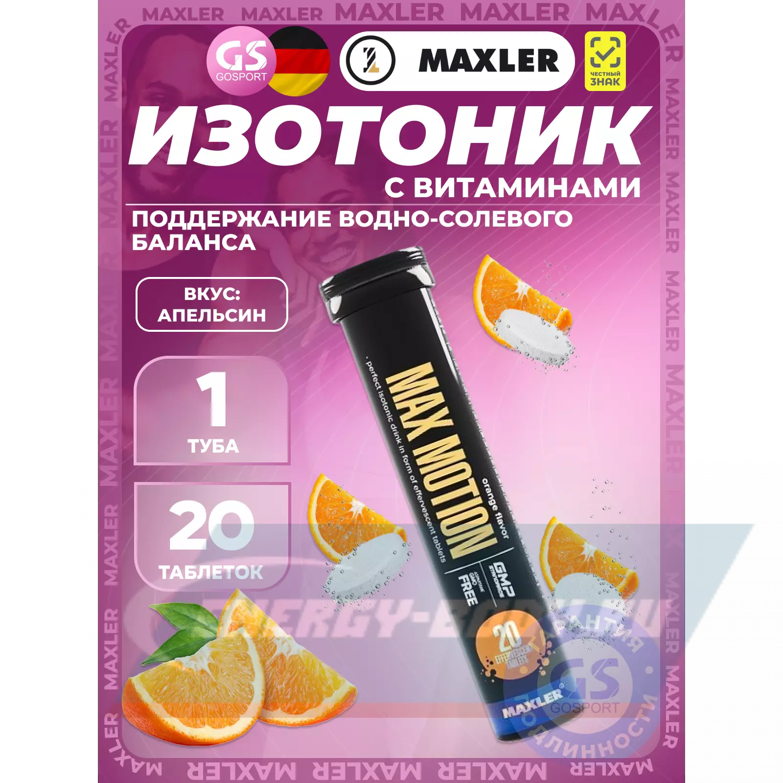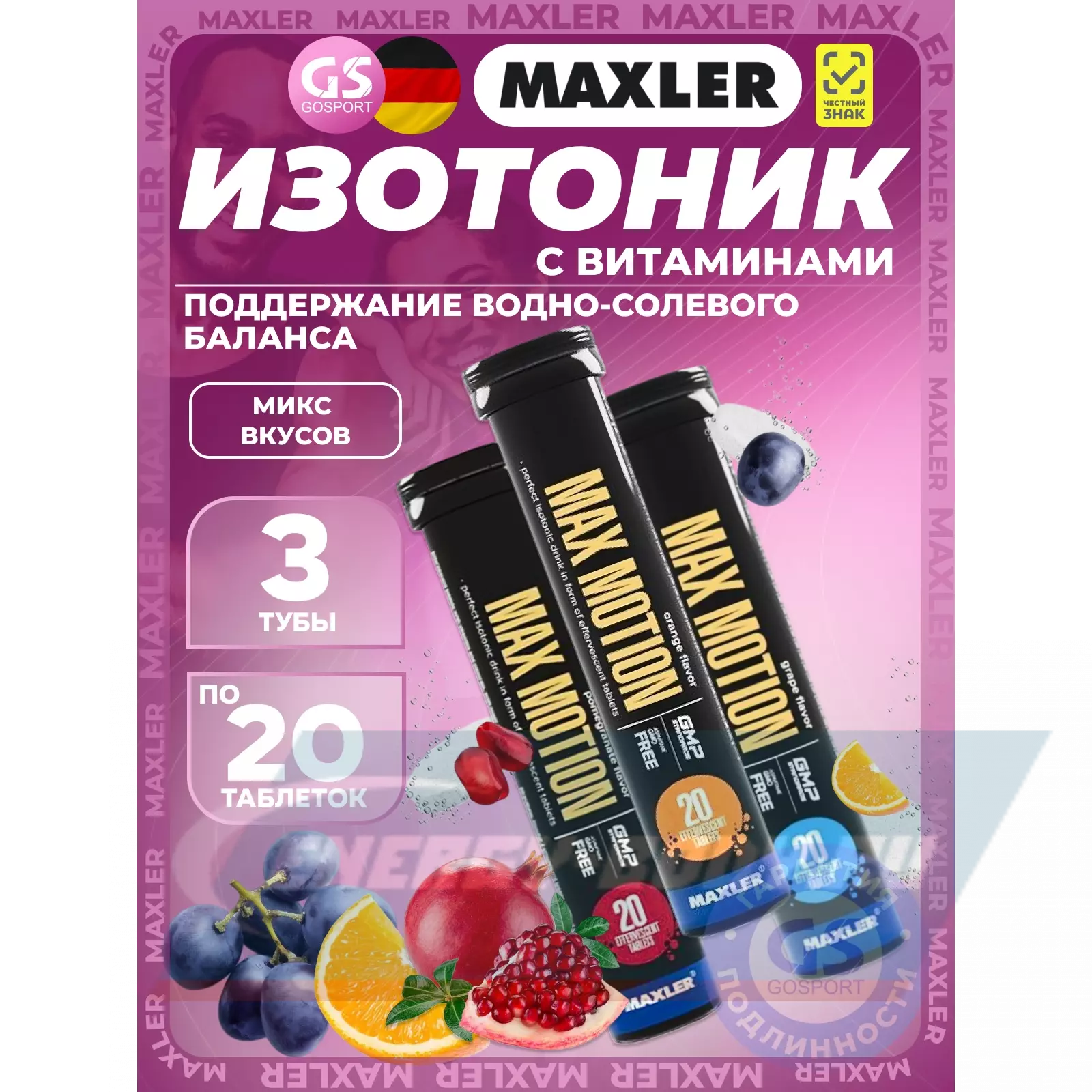 MAXLER Max Motion Effervescent 3х20 шипучих таблеток, Микс 2 — Восстановление и поддержание водно-солевого баланса