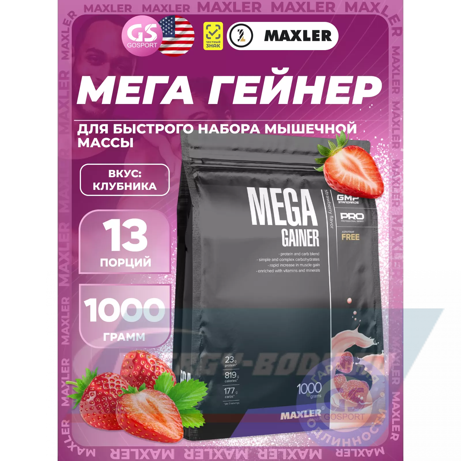 Mega Gainer 1000 г, Клубника