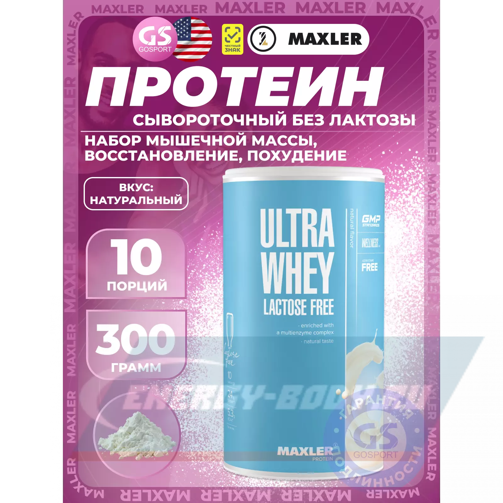 MAXLER Ultra Whey Lactose Free 300 г, Натуральный — Отсутствие лактозы, Минимальное количество жиров и сахаров