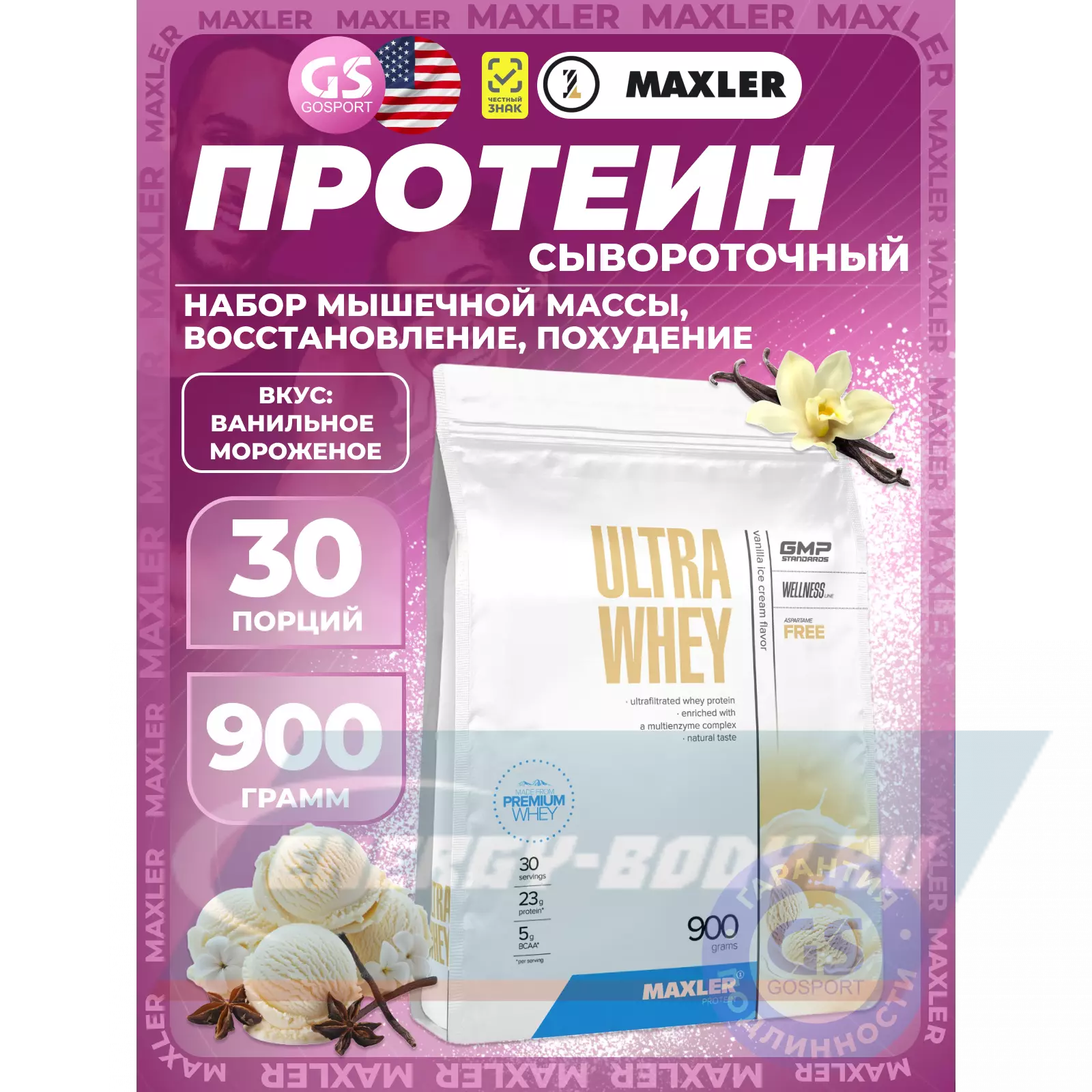 MAXLER Ultra Whey 900 г, Ванильное мороженное — Для роста и восстановления мышц