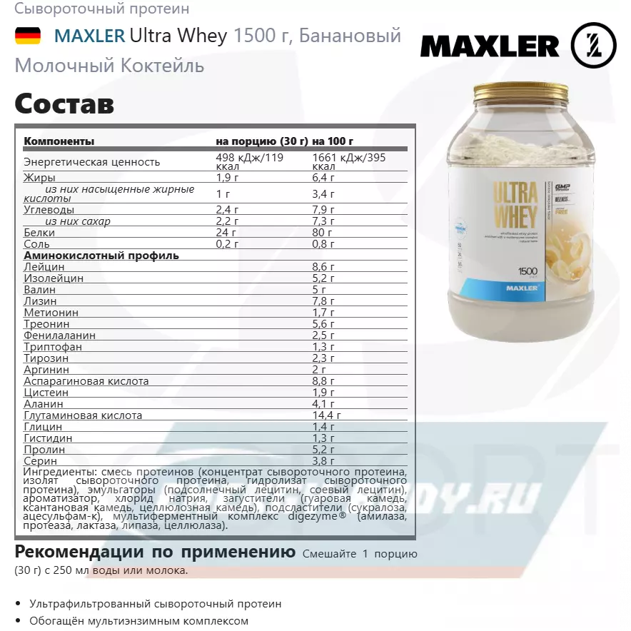 MAXLER Ultra Whey 1500 г, Банановый Молочный Коктейль — Для роста и восстановления мышц