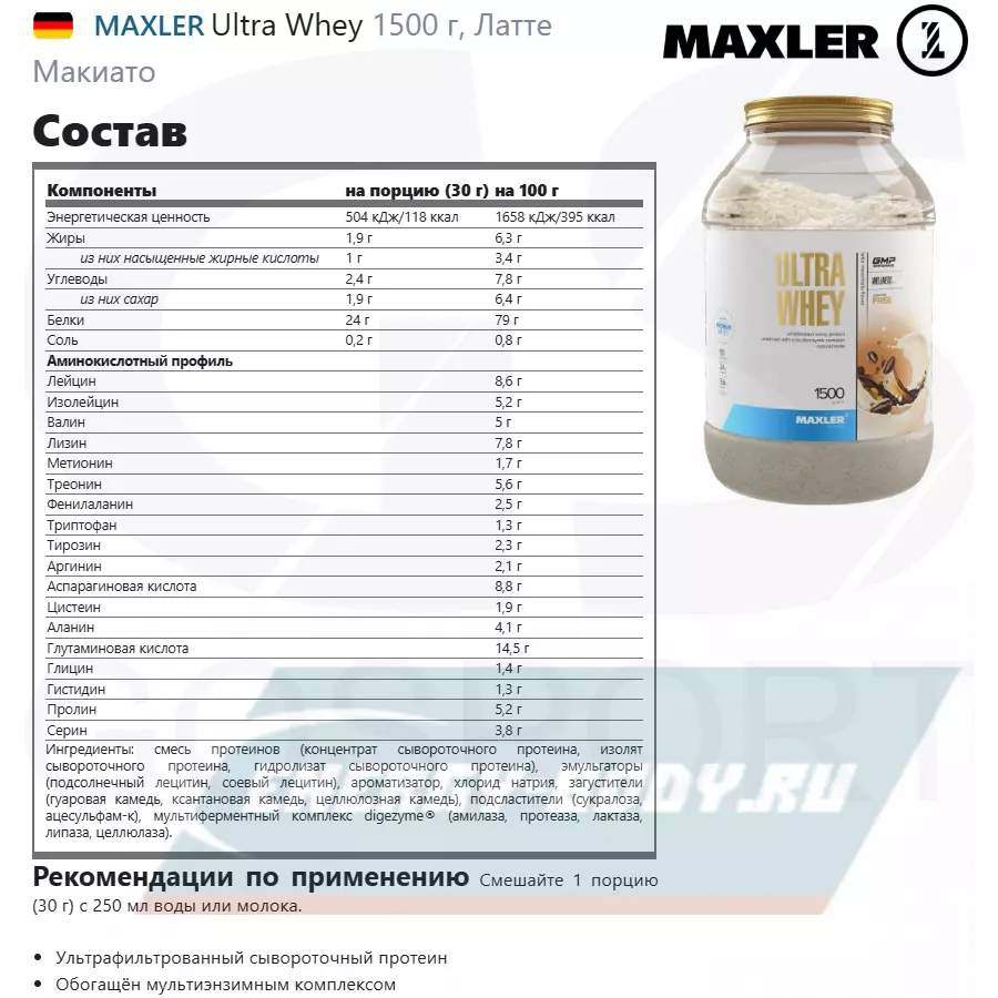 Состав MAXLER Ultra Whey
