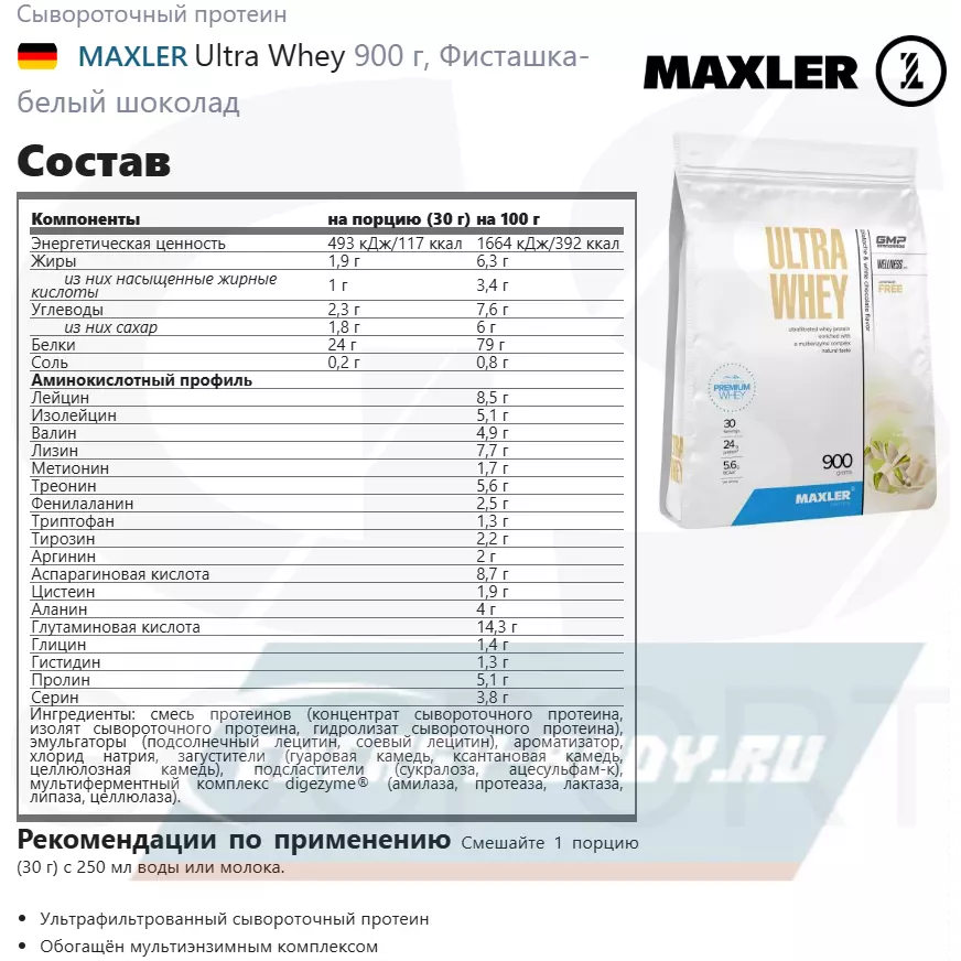 MAXLER Ultra Whey 900 г, Фисташка-белый шоколад — Для роста и восстановления мышц