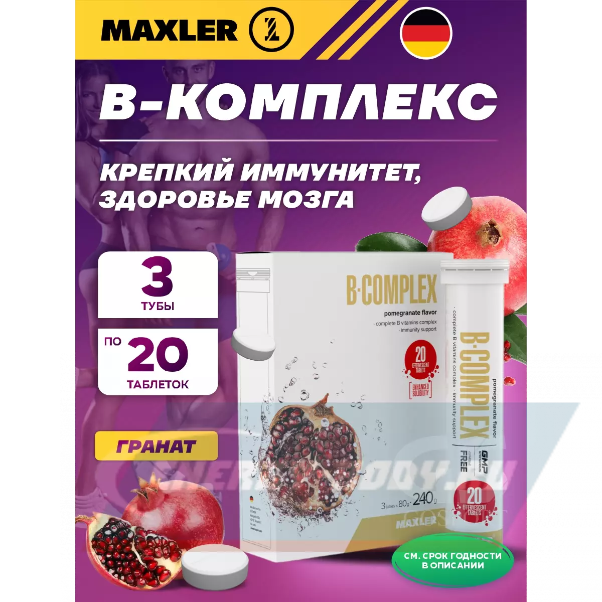 MAXLER B-Complex 3 x 20 шипучих таблеток, Гранат — для иммунитета, мозга и энергии