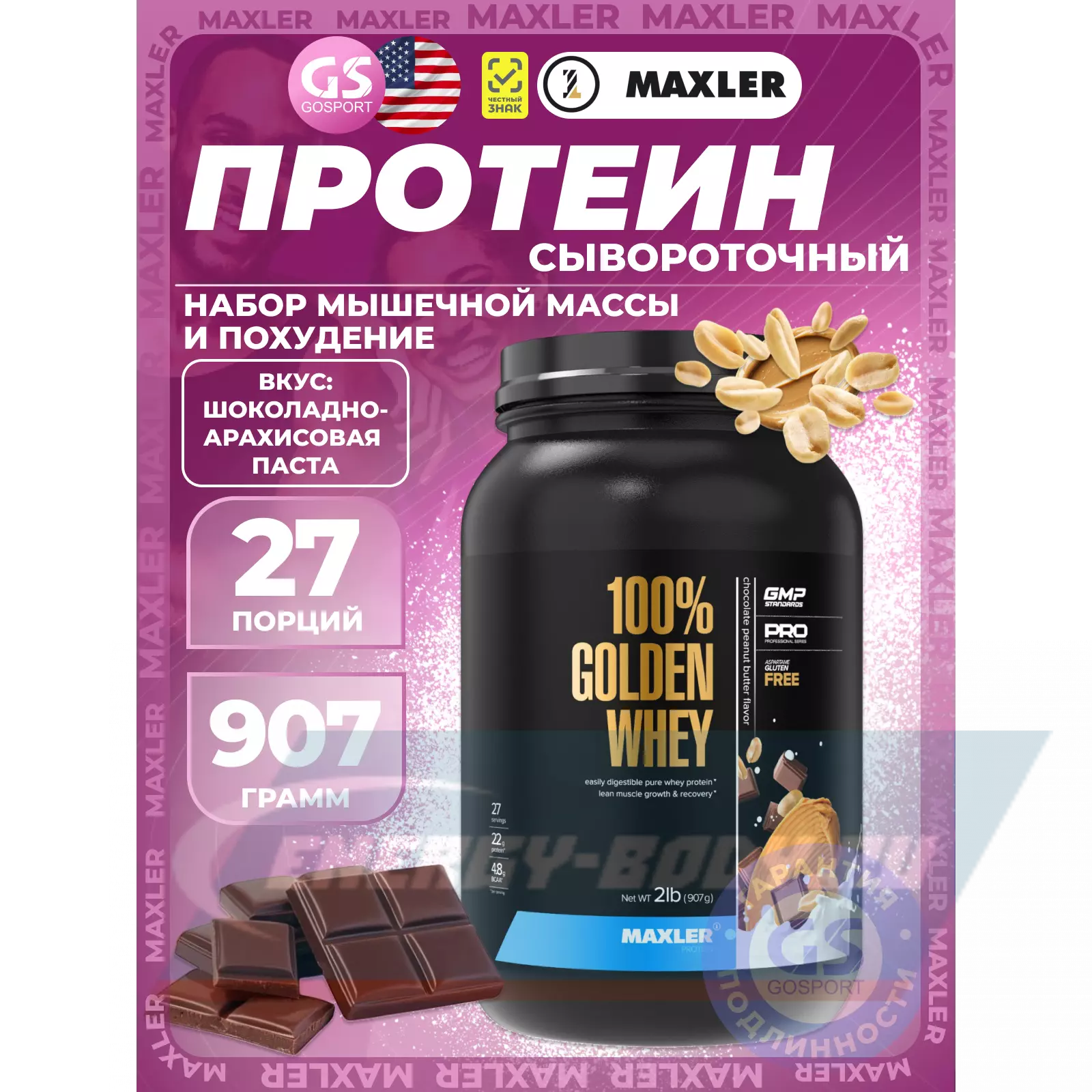 100% Golden Whey 907 г, Шоколадно-Арахисовая паста
