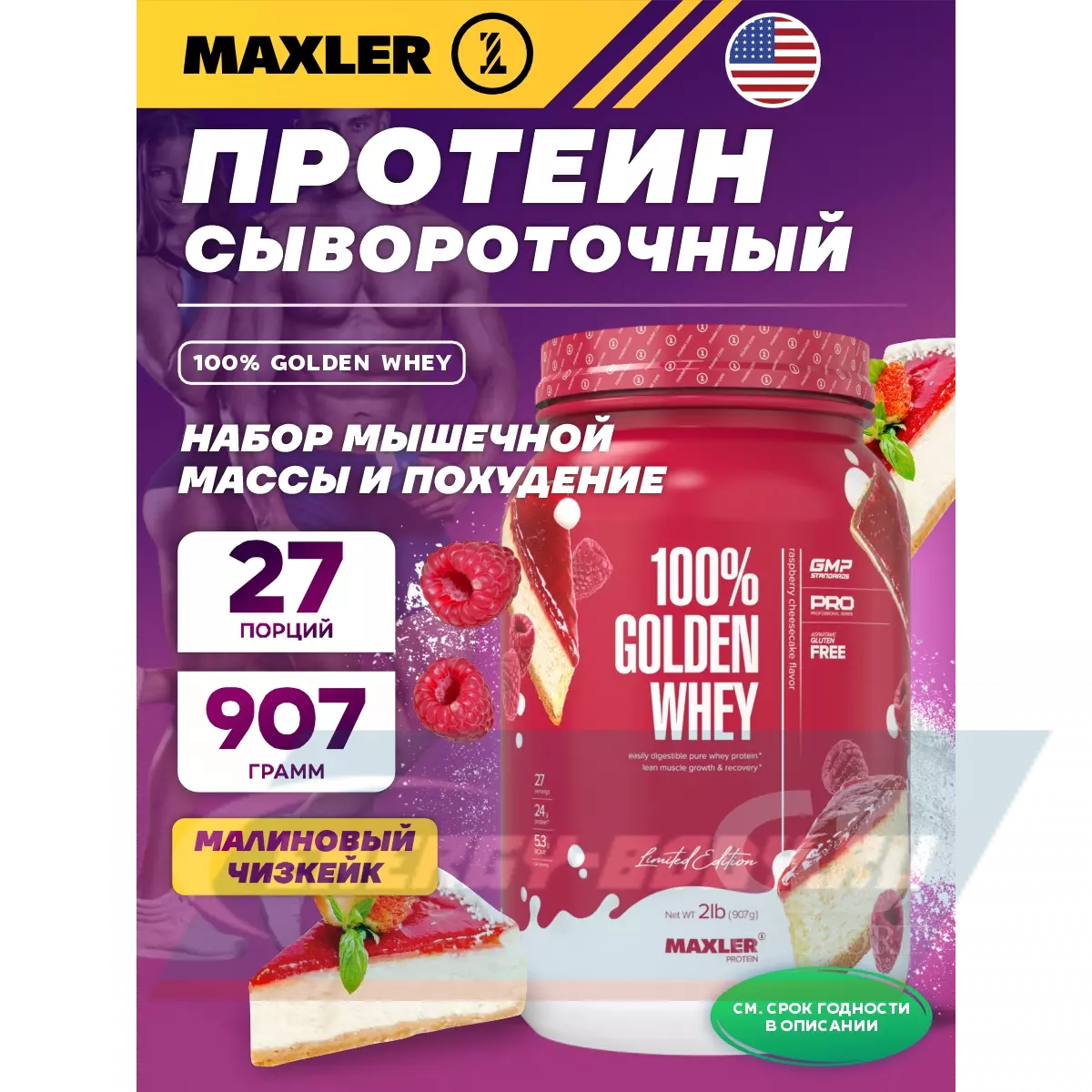 100% Golden Whey 907 г, Малиновый чизкейк