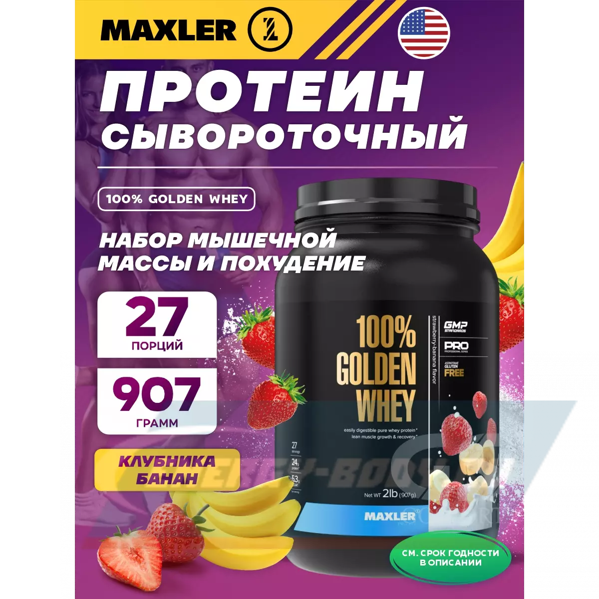 100% Golden Whey 907 г, Клубника-банан