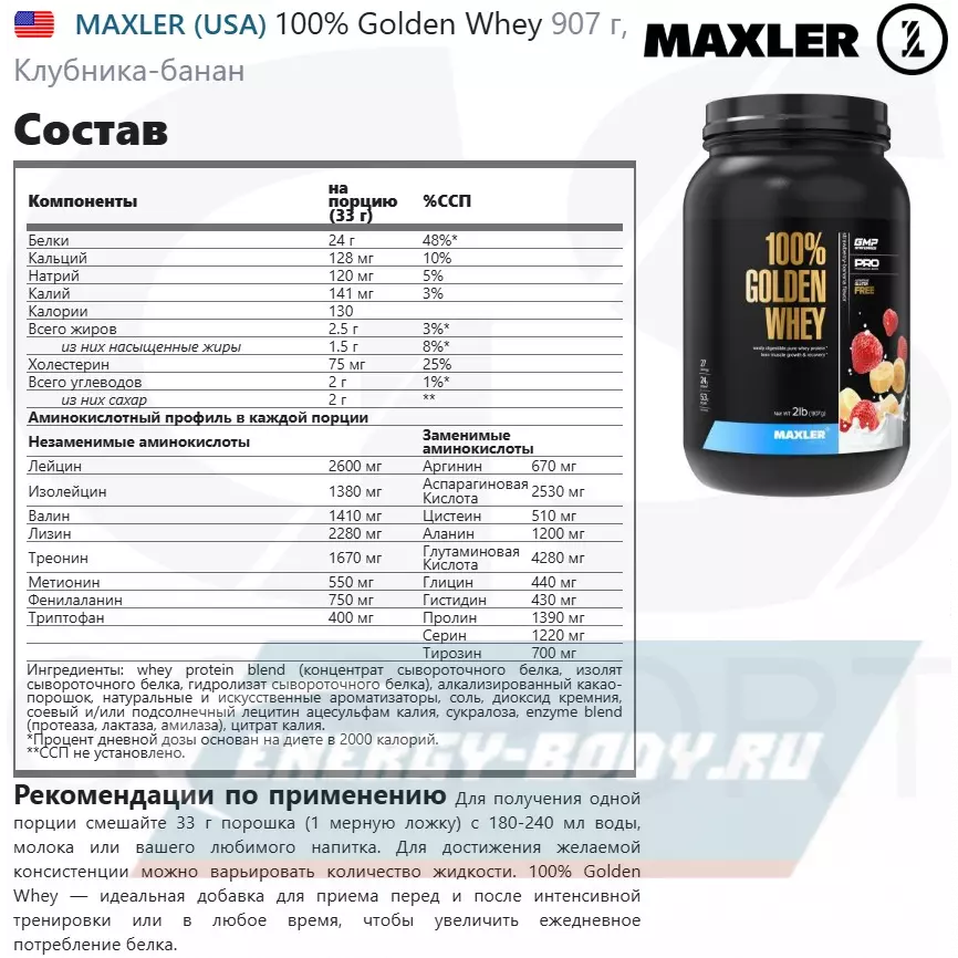 Состав MAXLER 100% Golden Whey