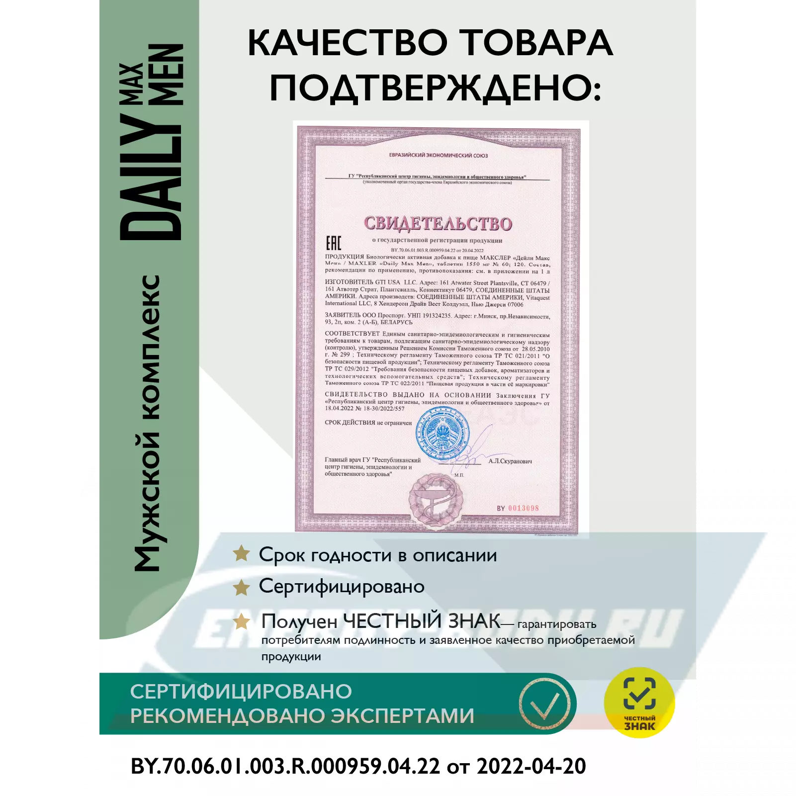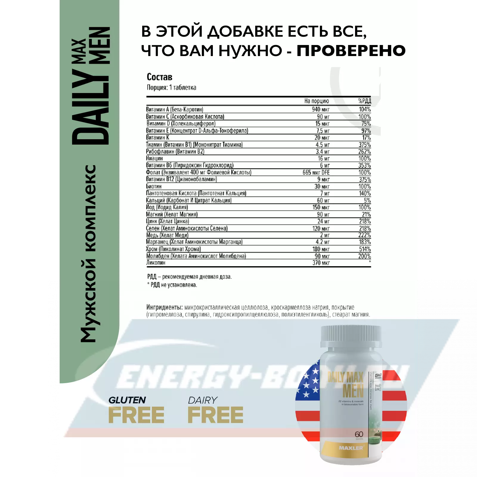 Daily Max Men поддерживает мужское здоровье. Цинк и селен в составе Daily Max Men необходимы для здоровья репродуктивной системы мужчины.