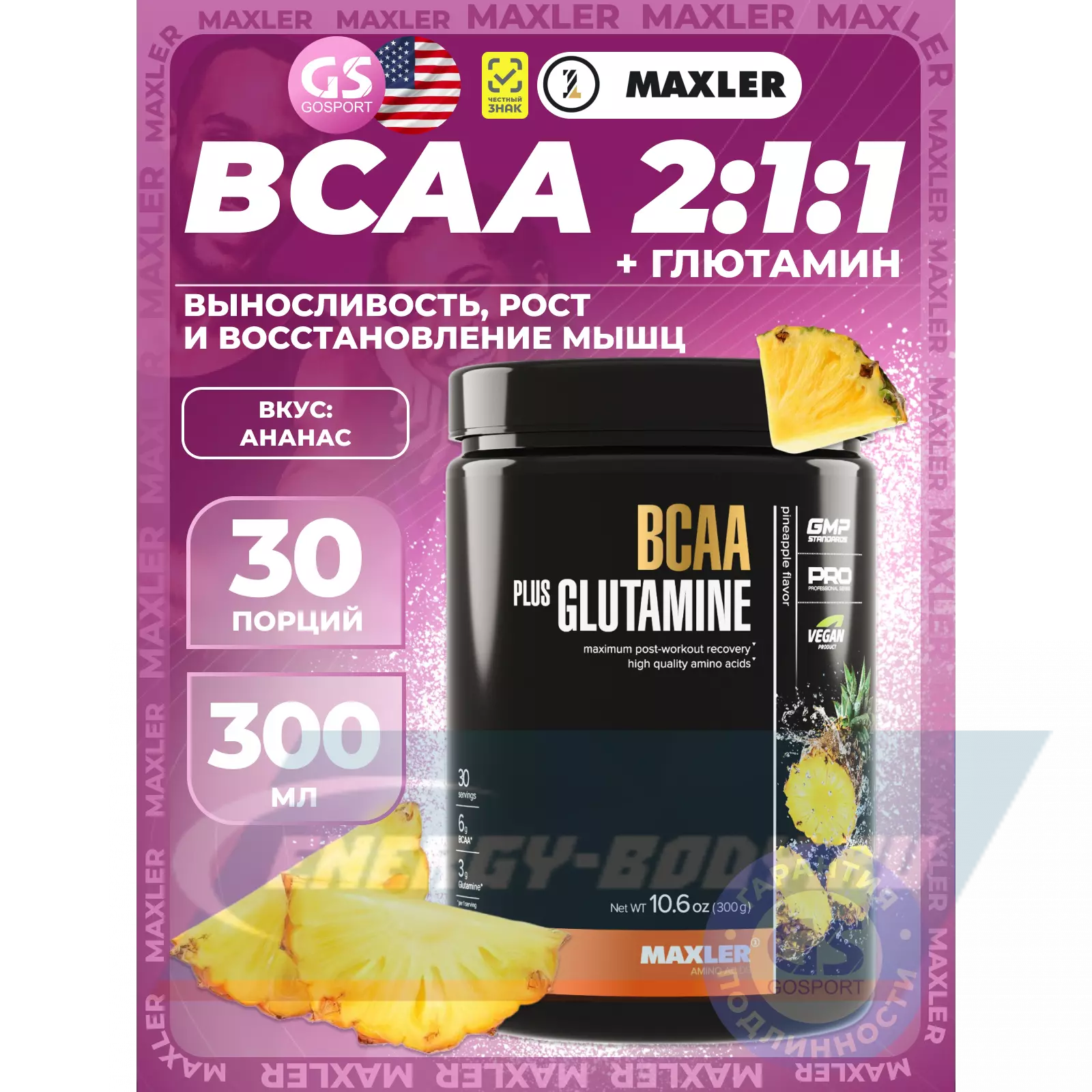 Maxler BCAA + Glutamine — это отличное сочетание четырёх аминокислот. Они поддерживают энергию и силы во время занятий и помогают восстанавливаться после интенсивных тренировок. Станьте лучше вместе с Maxler!