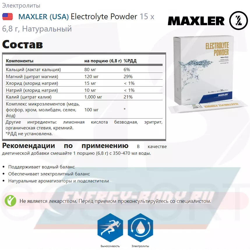 Состав MAXLER Electrolyte Powder