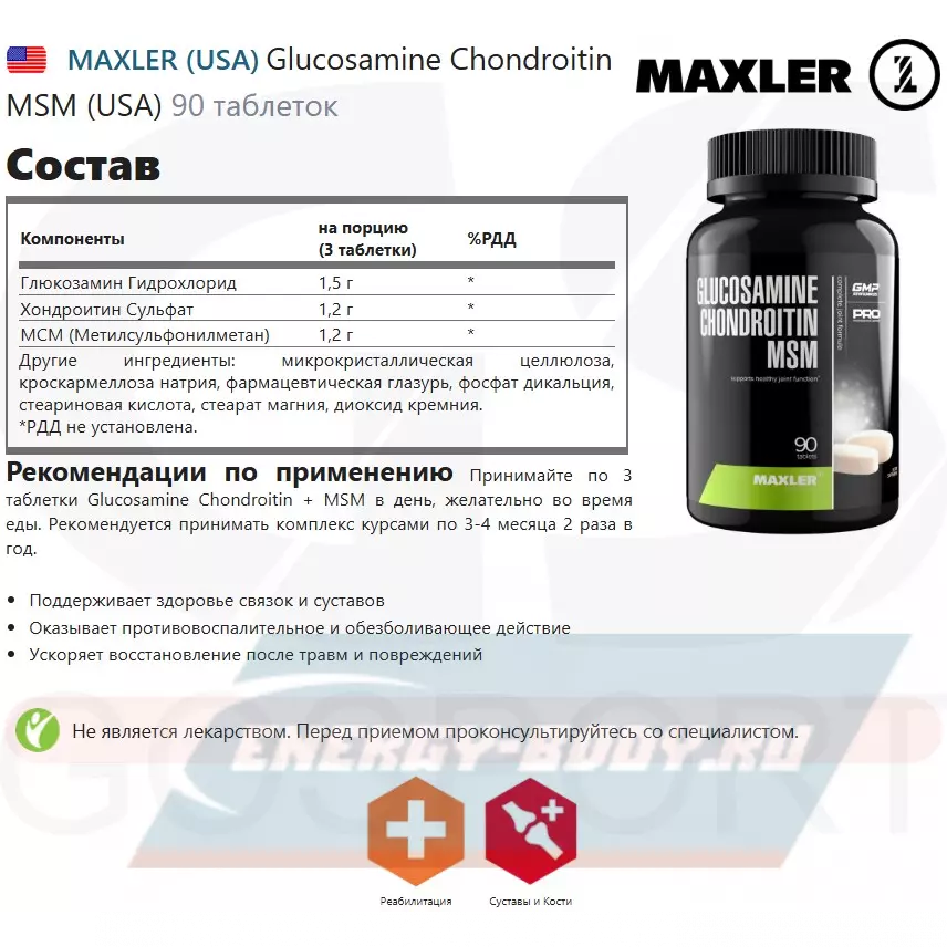 Состав MAXLER Glucosamine Chondroitin MSM (USA)