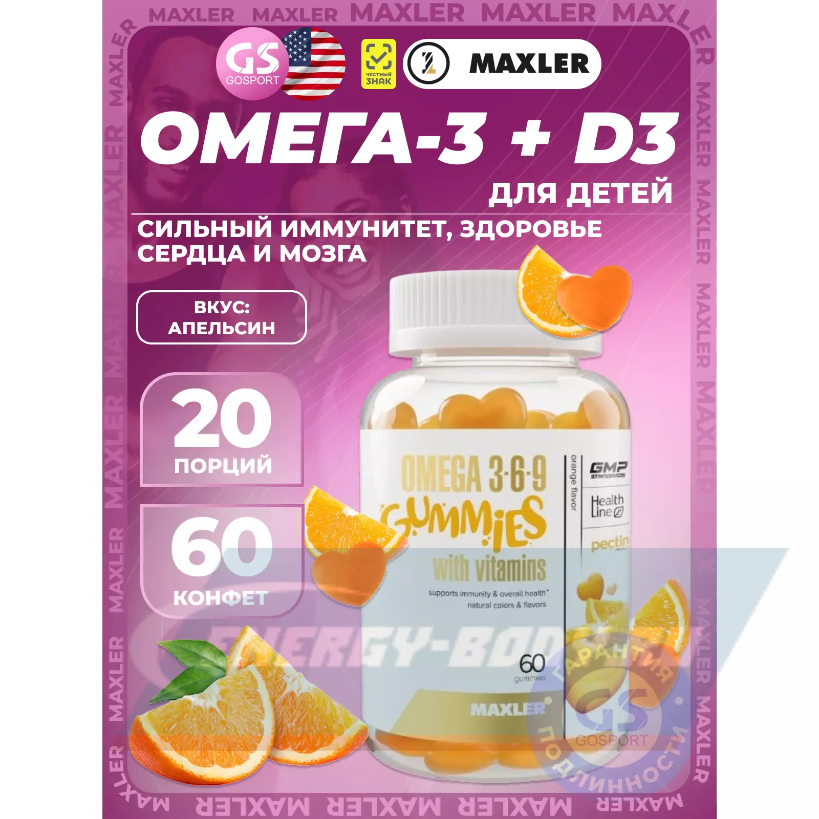 MAXLER Omega 3-6-9 Gummies 60 мармеладок, Апельсин — для здоровья сердца и мозга, поддержки иммунитета