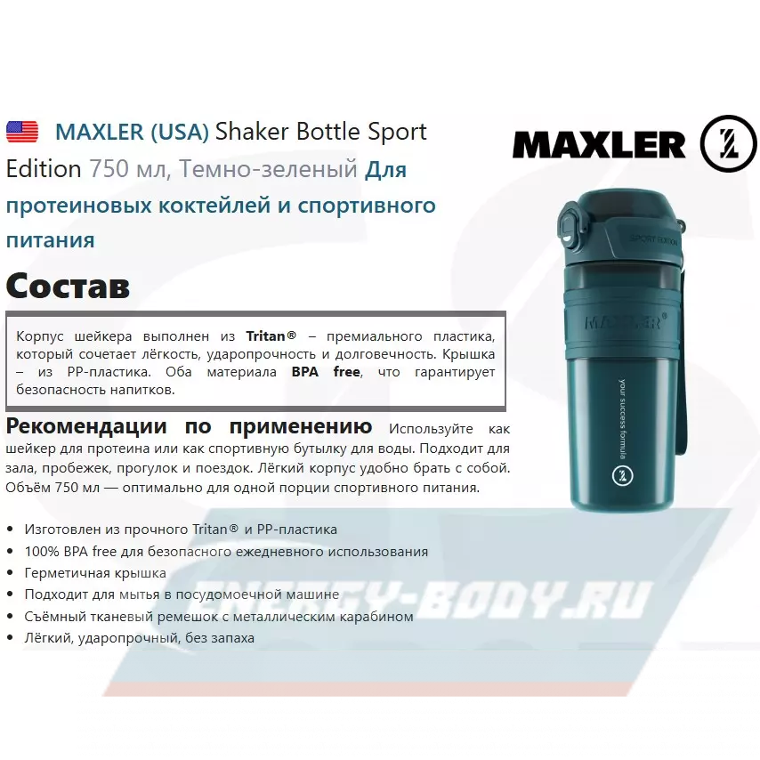Maxler Sport Edition Shaker — выбор спортсменов и любителей фитнеса, ценящих качество и удобство. Tritan® корпус, BPA free материалы и герметичная крышка обеспечат идеальное смешивание и надёжность в любой ситуации.
