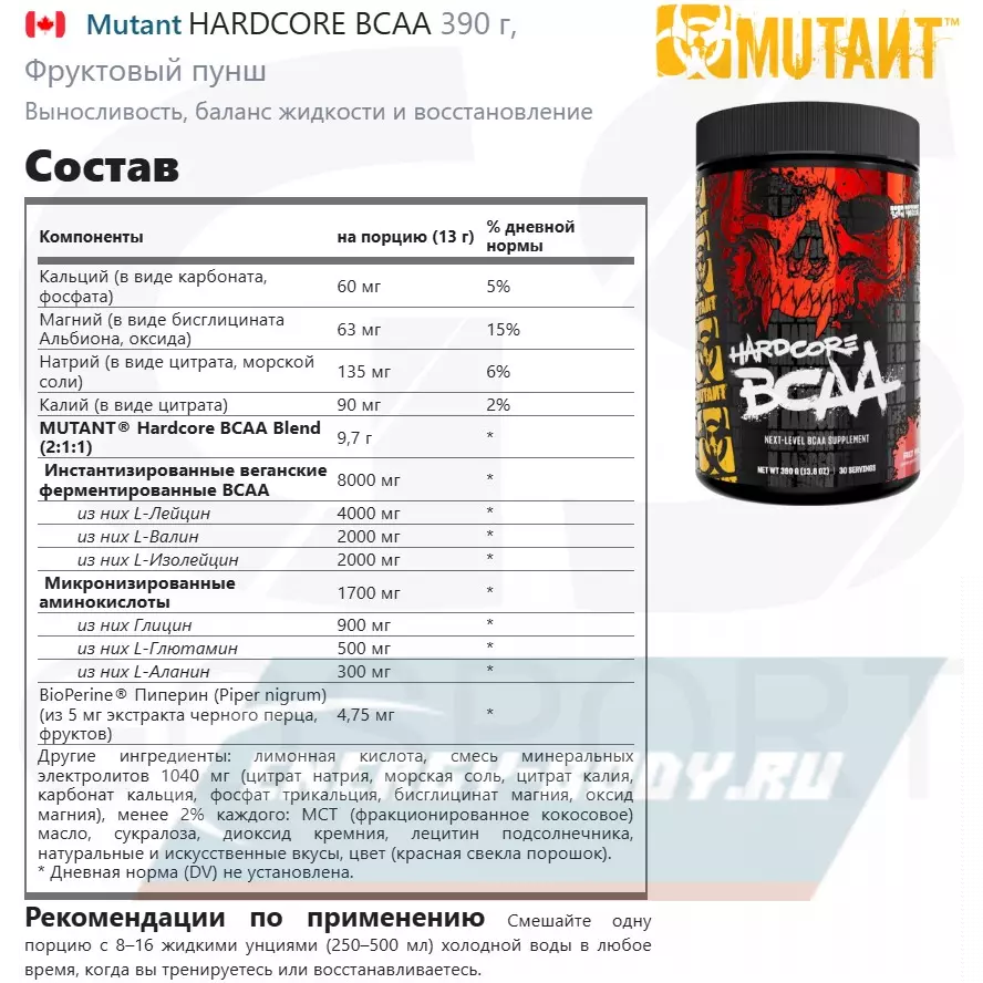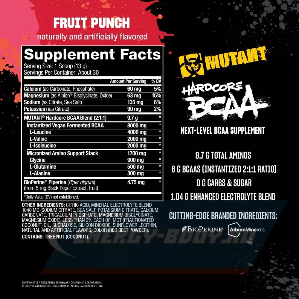 Mutant HARDCORE BCAA 390 г, Фруктовый пунш — Повышение выносливости и ускорение восстановления
