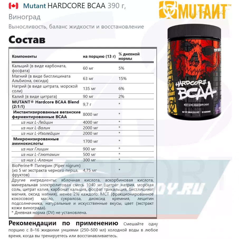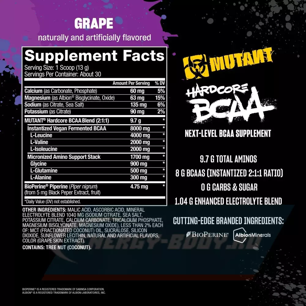 В отличие от многих дешёвых добавок BCAA, Mutant использует 100% веганские ферментированные аминокислоты вместо привычных птичьих перьев, а иногда и волос!