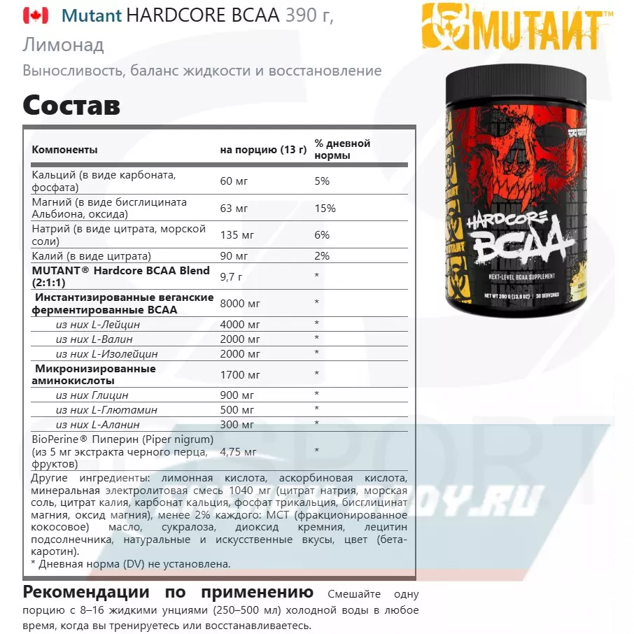 ВСАА Mutant HARDCORE BCAA 390 г, Лимонад ВСАА Mutant HARDCORE BCAA 390 г, Лимонад ВСАА Mutant HARDCORE BCAA 390 г, Лимонад ВСАА Mutant HARDCORE BCAA 390 г, Лимонад ВСАА Mutant HARDCORE BCAA 390 г, Лимонад