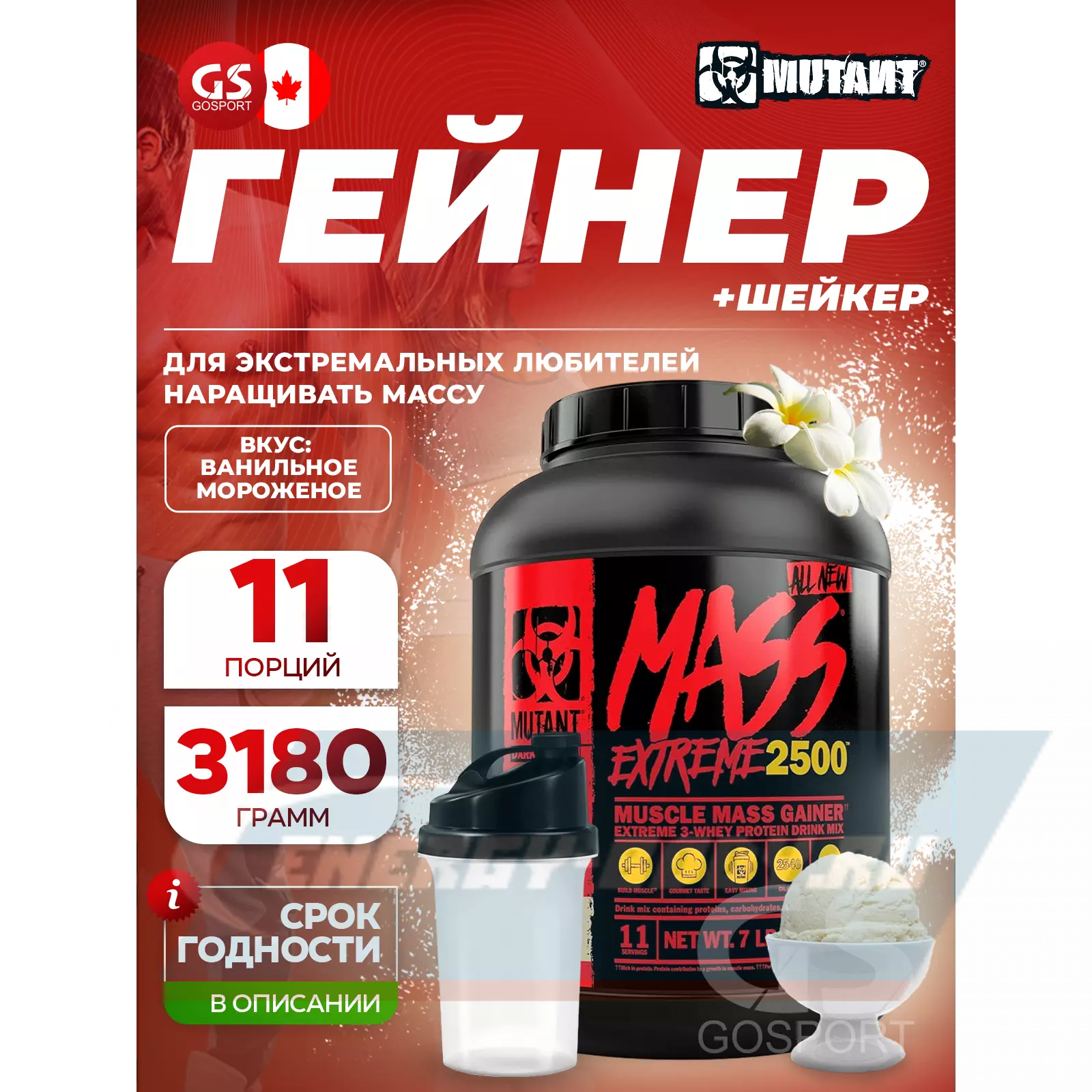Mass Extreme 2500 3290 г + шейкер, Ванильное мороженое
