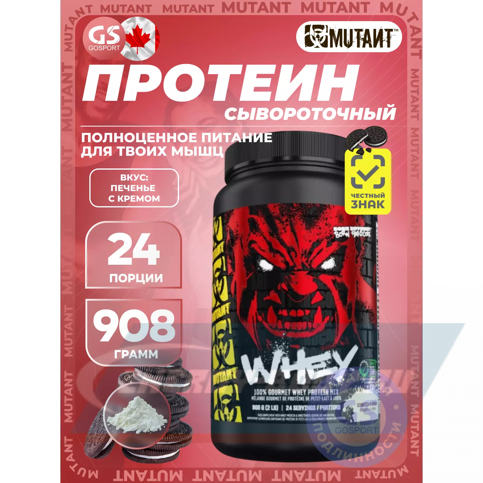Mutant Whey 908 г, Печенье с Кремом — Для набора мышечной массы и восстановления