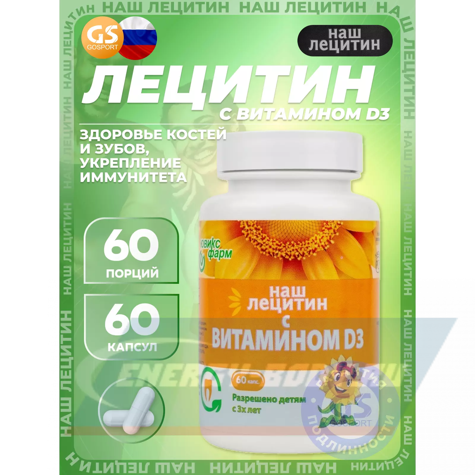 НАШ ЛЕЦИТИН с витамином D3 60 капсул — Здоровье костей и зубов, укрепление иммунитета