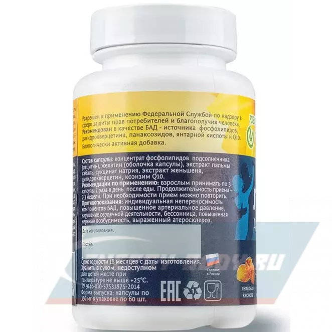 Ингредиенты: концентрат фосфолипидов подсолнечника (лецитин), экстракт пальмы сабаль, сукцинат натрия, экстракт женьшеня, дигидрокверцетин, коэнзим Q10, желатин пищевой - оболочка капсулы (Е441).