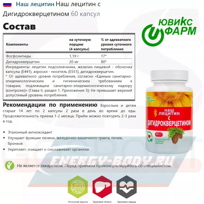 Наш лецитин с дигидрокверцетином. Эталонный антиоксидант.
